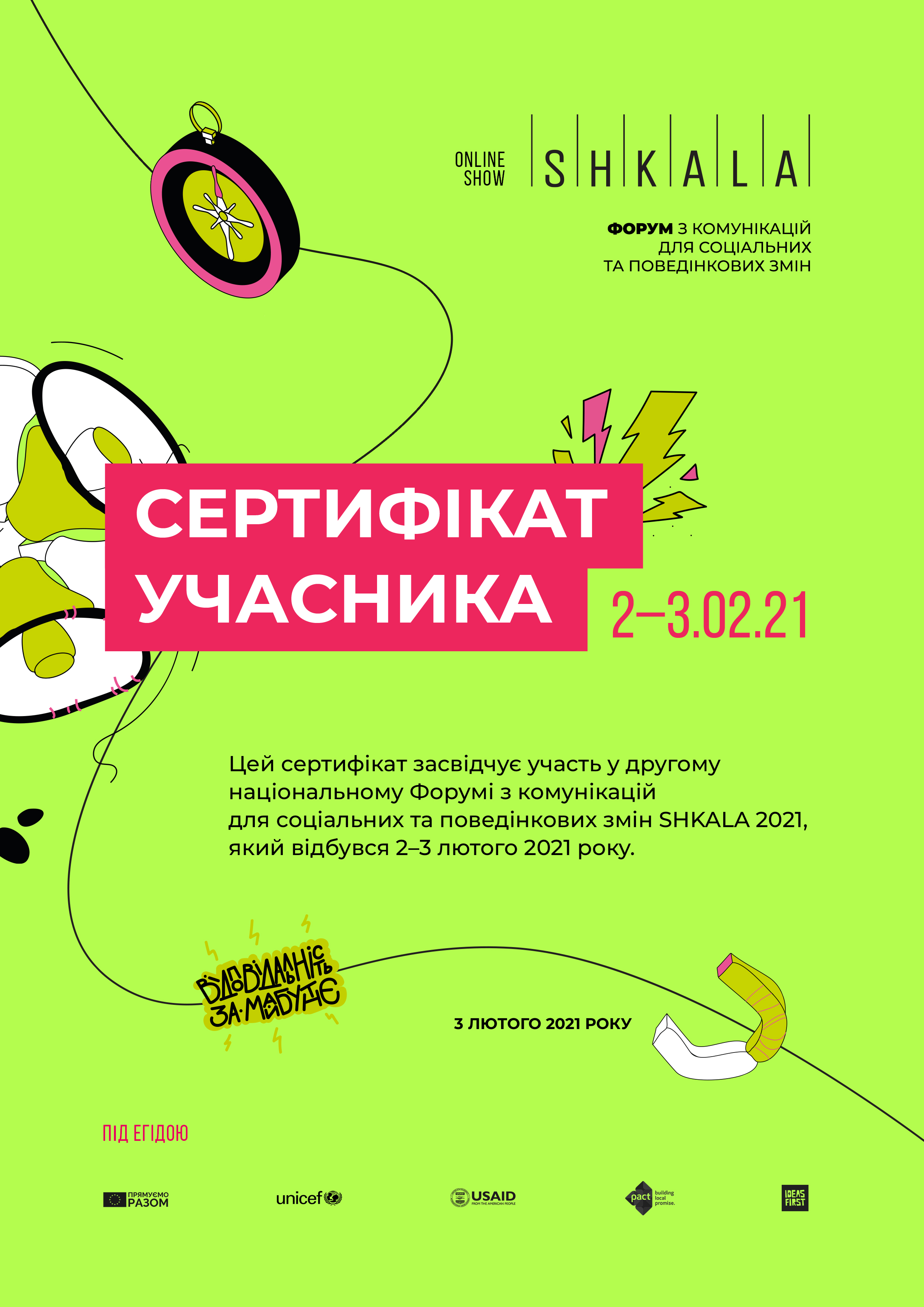 | 6500 | ІІ Національний Форум з комунікацій для соціальних та поведінкових змін SHKALA 2021 | Пасивна участь | Київ |