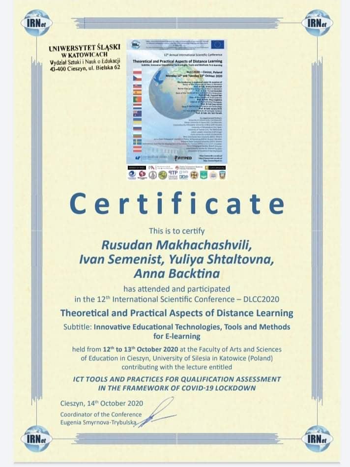 5557 DLCC2020 (Theoretical and Practical Aspects of Distance Learning ICT TOOLS AND PRACTICES FOR FINAL QUALIFICATION ASSESSMENT IN THE FRAMEWORK OF COVID-19 LOCKDOWN Польща, м. Цешин document