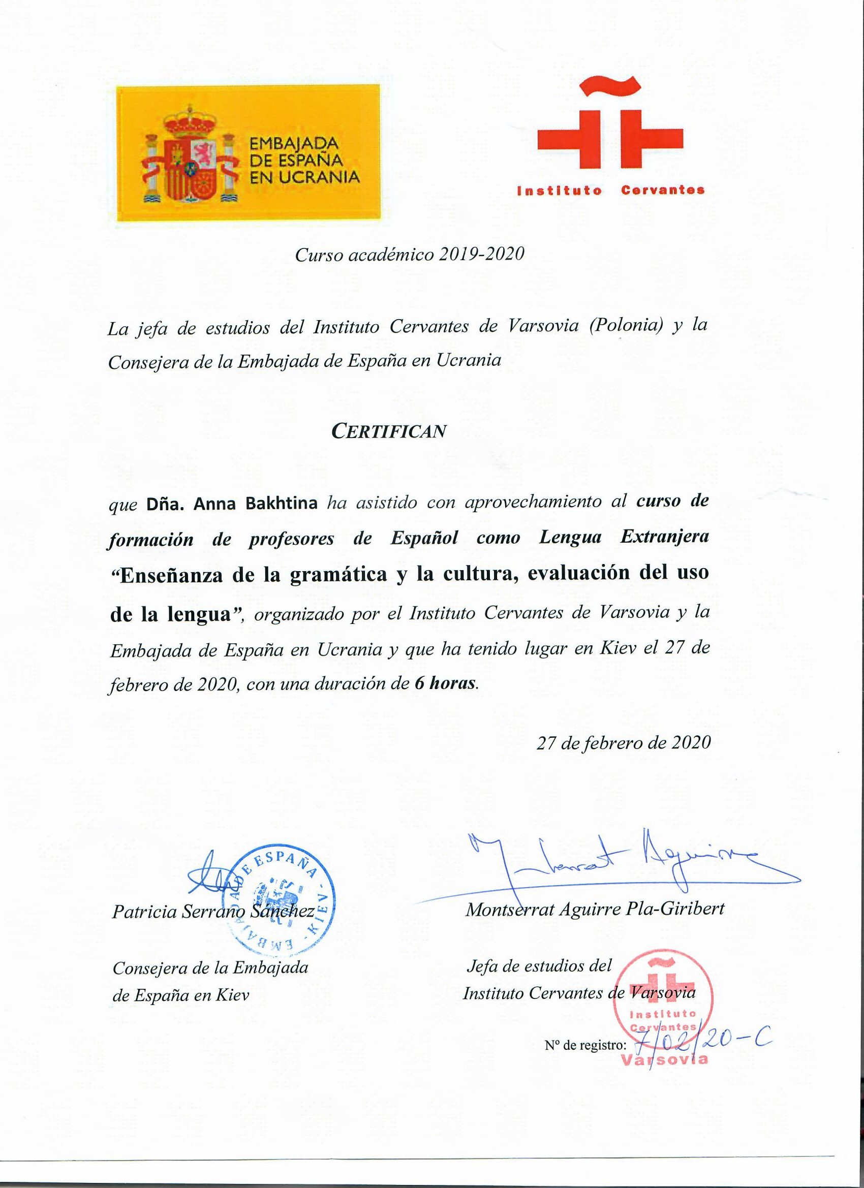 6334 Curso de formación de profesores de Español como Lengua Extranjera Enseñanza de la gramática y la cultura, evaluación del uso de la lengua Instituto Cervantes de Varsovia y la Embajada de España en Ucrania. Kyiv, Ukraine document