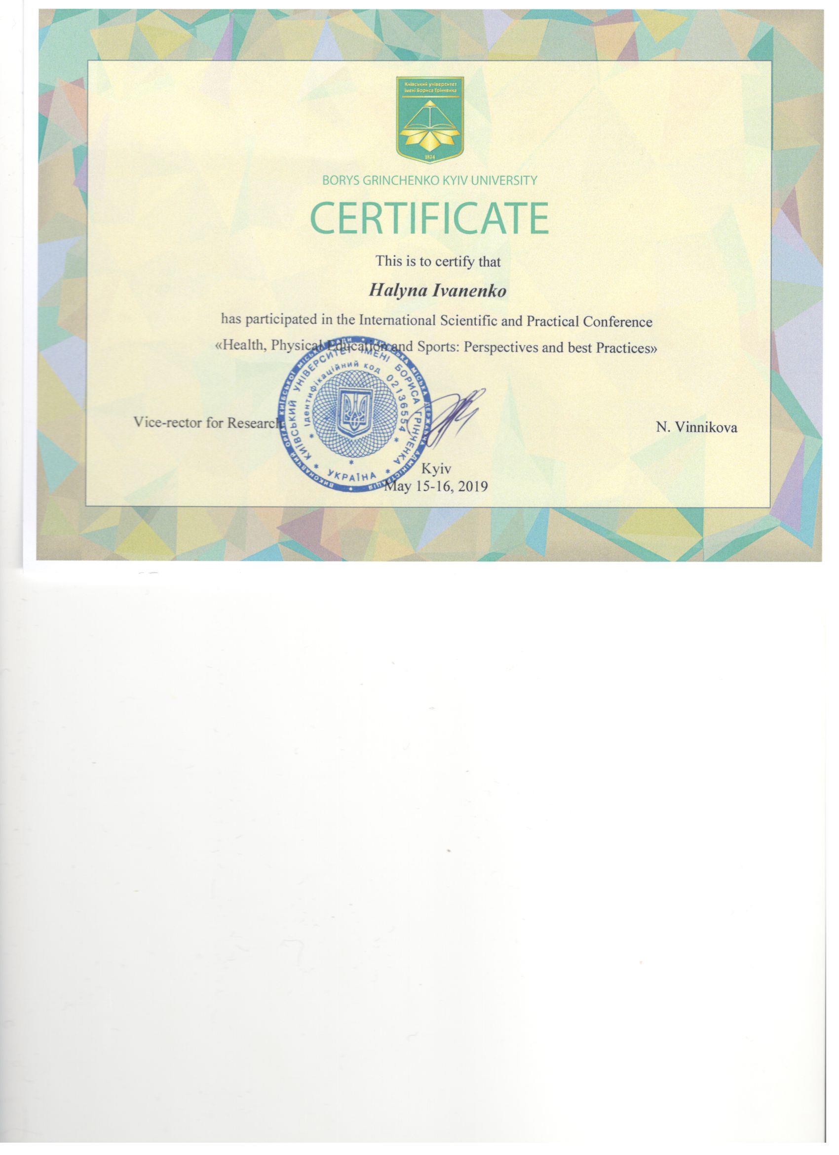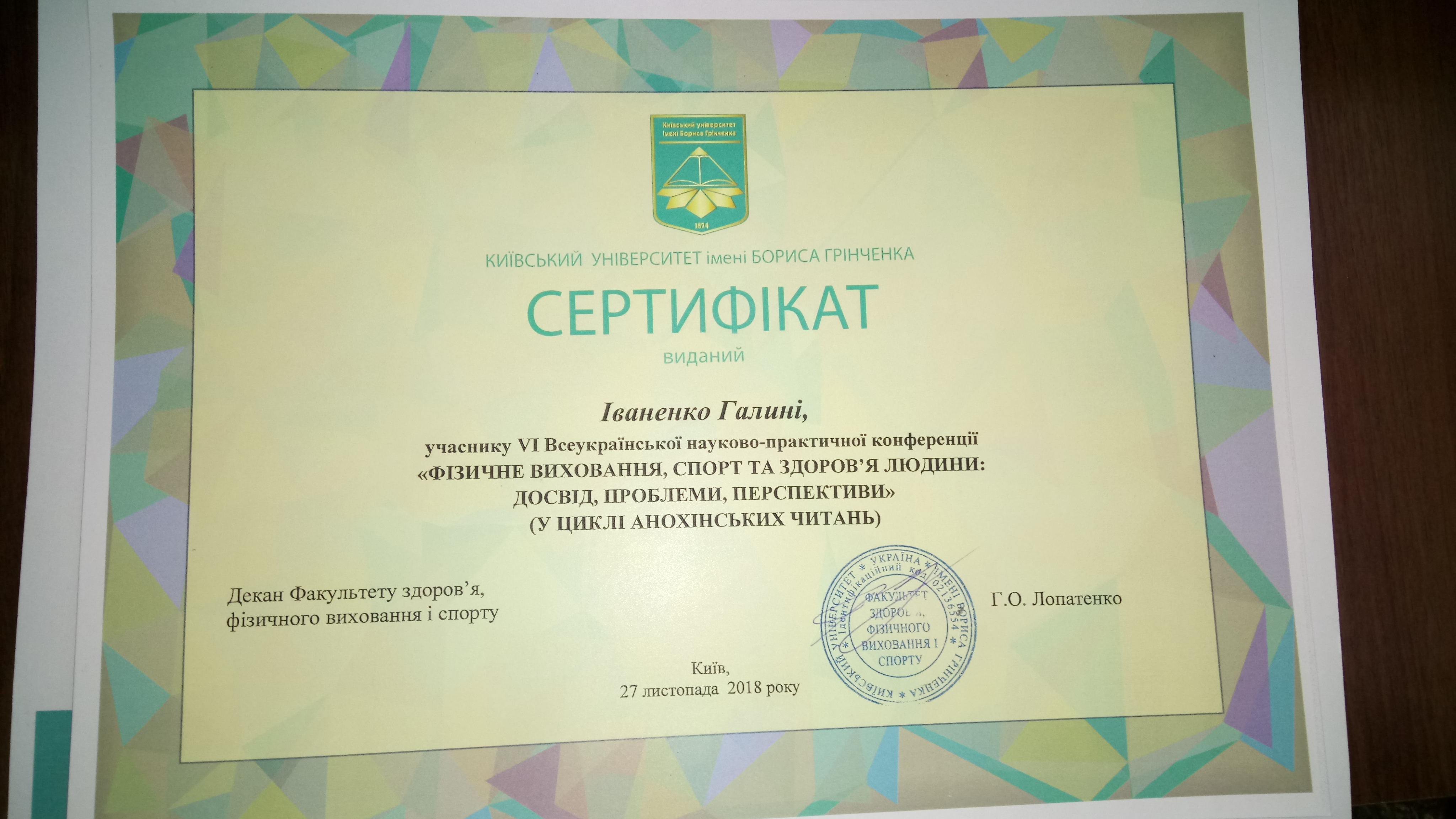| 3444 | Фізичне виховання, спорт та здоров'я людини: досвід, проблеми, перспективи (у циклі Анохінських читань) | учасник конференції | Київський університет імені Б. Грінченка |
