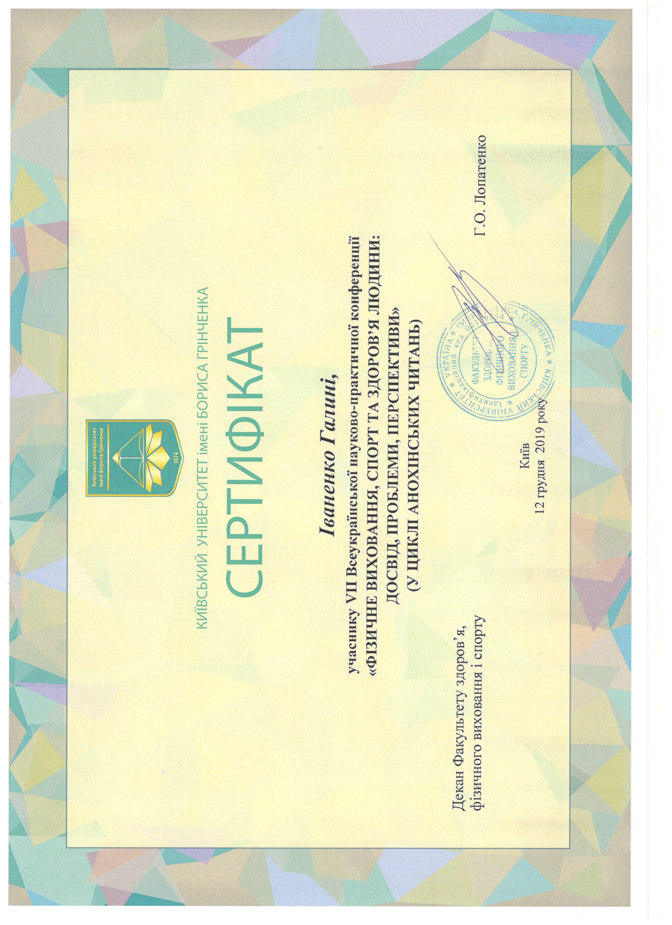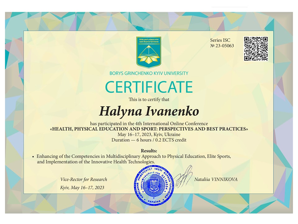 | 11583 | ХІ Всеукраїнськf науково-практичнf онлайн-конференціz "Фізичне виховання, спорт та здоров’я людини: досвід, проблеми, перспективи" | співавтор тез | Київський столичний університет імені Бориса Грінченка | document.pdf | |