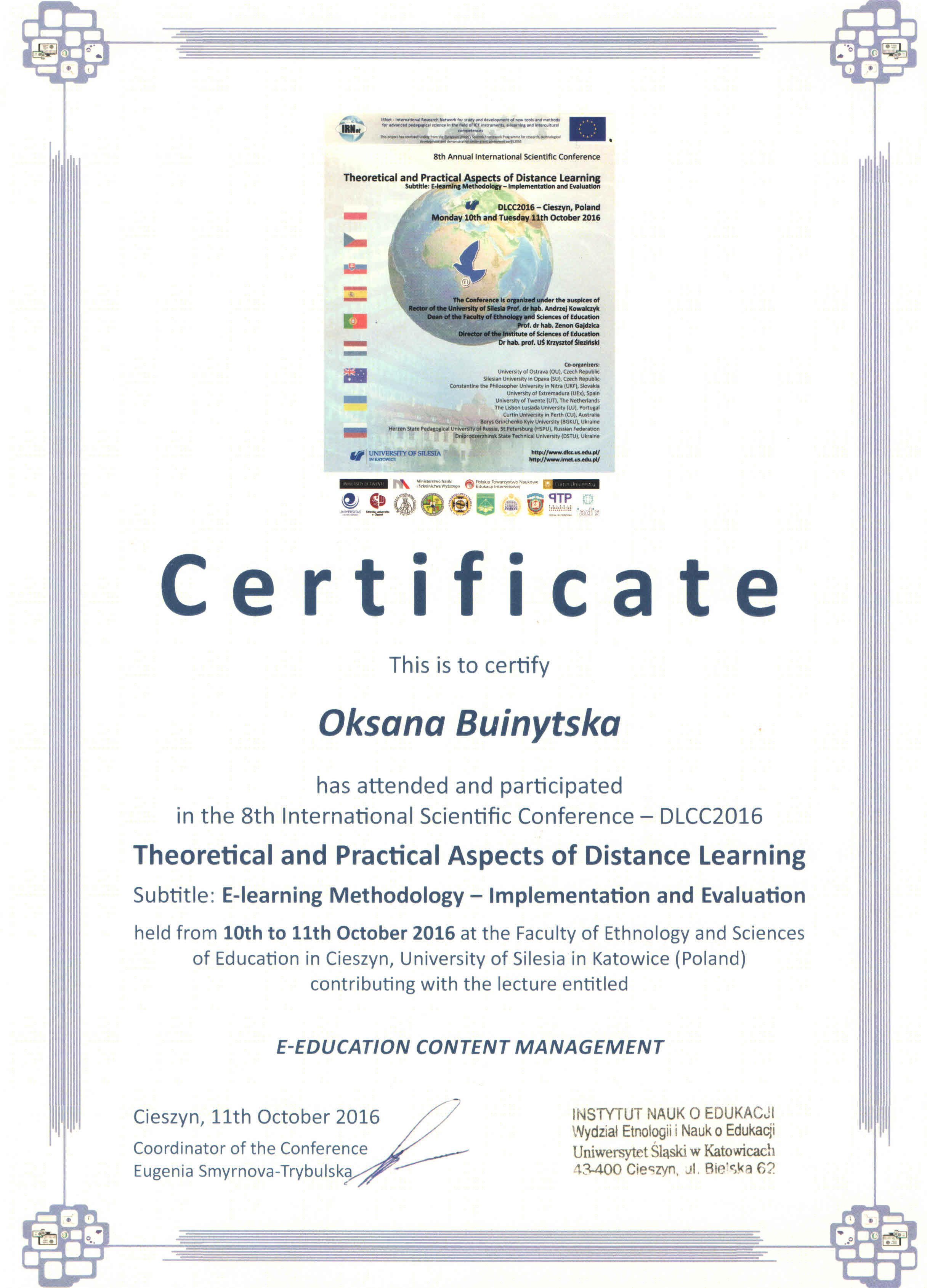 | 1303 | Theoretical and Practical Aspects of Distance Learning: 8th Annual International Scientific Conference DLCC2016. Subtitle: E-learning Methodology – Implementation and Evaluation | E-Education Content Management | Cieszyn, Poland |
