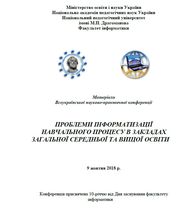 | 3694 | Проблеми інформатизації навчального процесу в закладах середньої та вищої освіти: Всеукраїнська науково-практична конференція | Персональний кабінет учасника освітнього процесу у системі Moodle | Київ, НПУ імені М.П. Драгоманова |