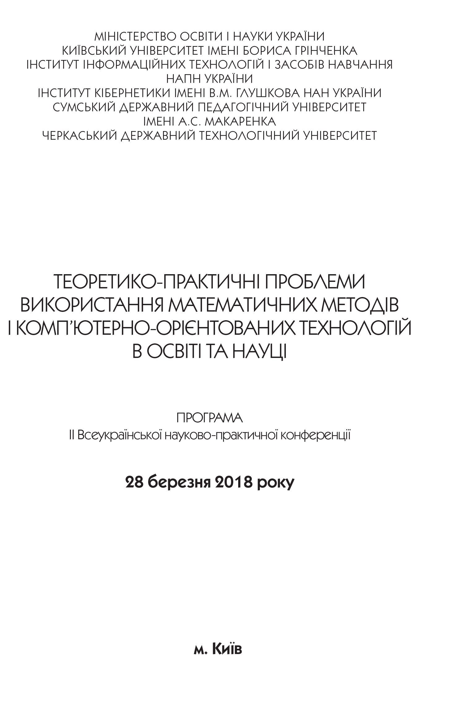 | 3440 | Теоретико-практичні проблеми використання математичних методів і комп’ютерно-орієнтованих технологій в освіті та науці | Застосування комп’ютерних технологій у процесі організації самостійної роботи студентів | Київ, Київ. ун-т ім. Б. Гринченка |