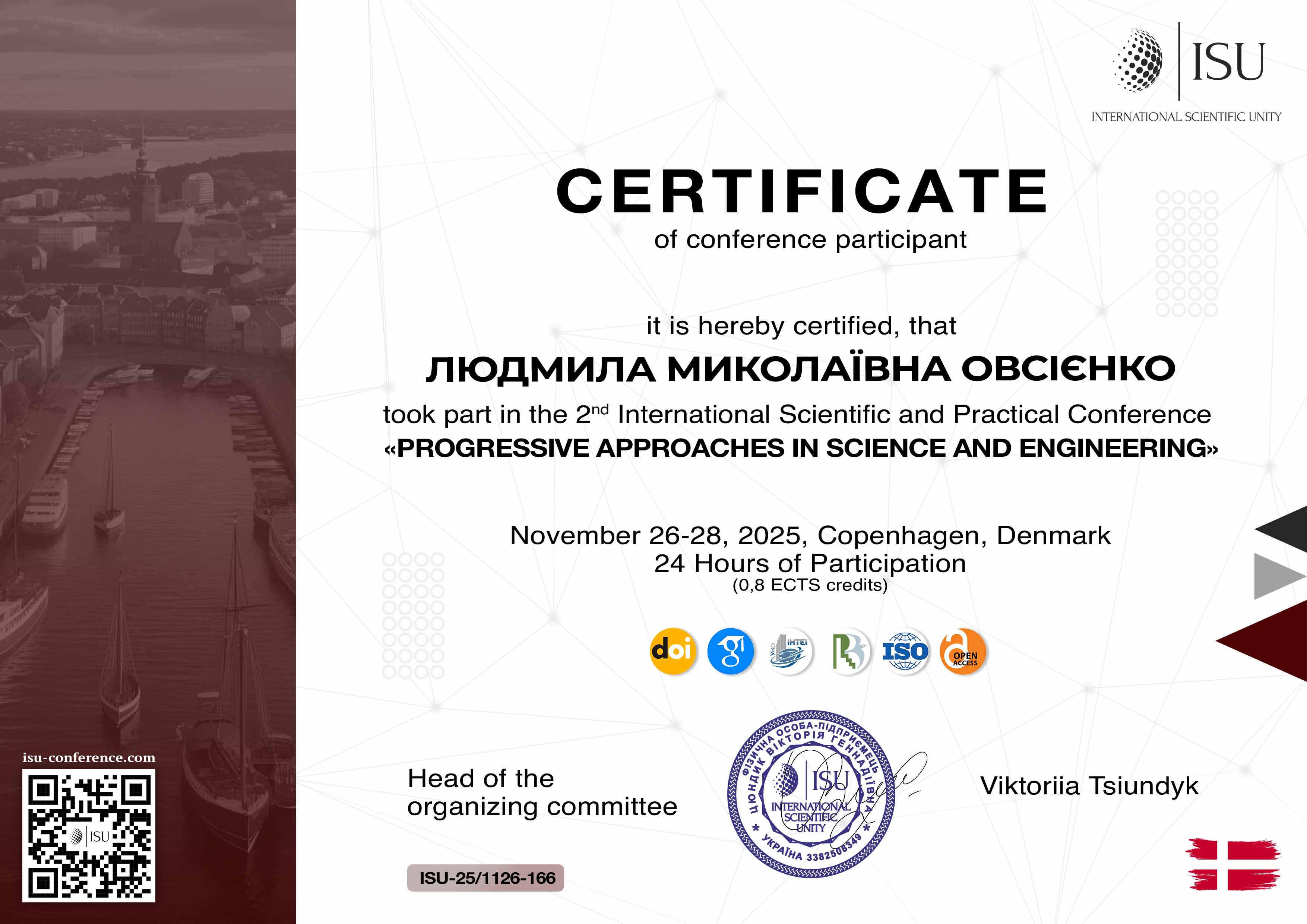 | 12587 | ІІ Міжнародна науково-практична конференція «Progressive Approaches in Science and Engineering» | «Гендерні аспекти мовної репрезентації в українських медіа» | Копенгаген, Данія |