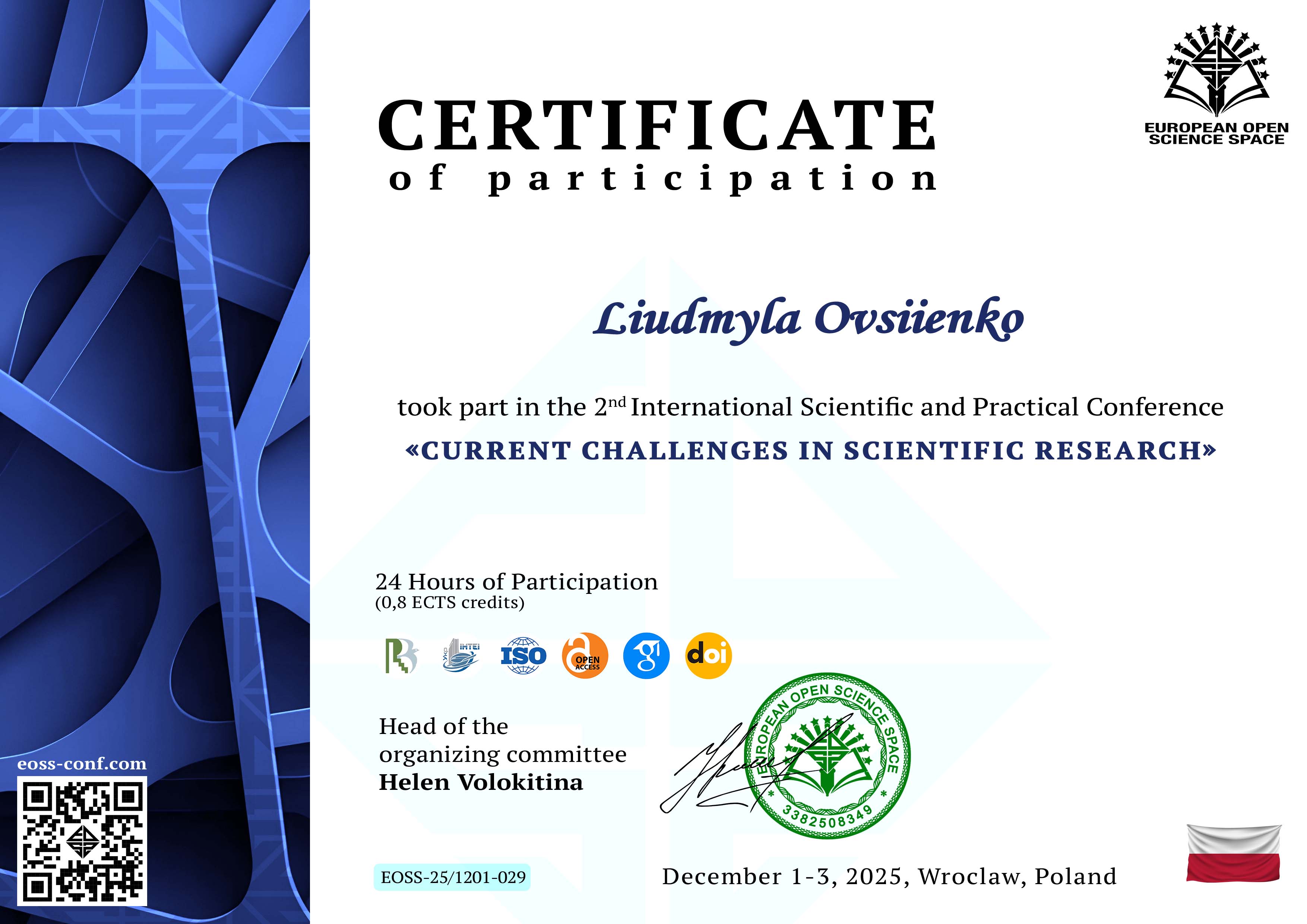| 12690 | ІІ Міжнародна науково-практична конференція «Current Challenges in Scientific Research» | «Мовні маркери маніпуляції та перекручення фактів у сучасних українських медіа» | Вроцлав, Польща |