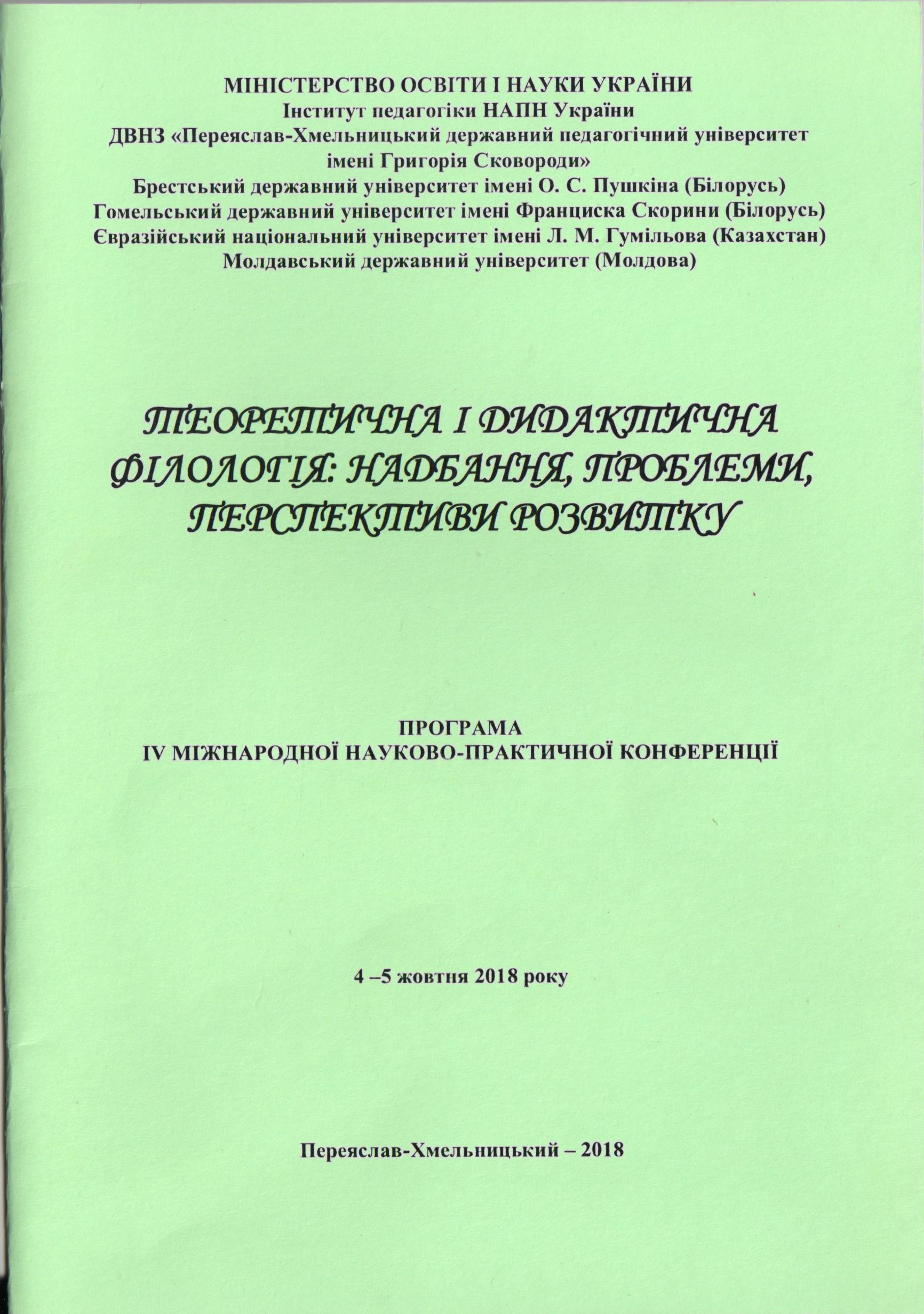 | 9418 | Міжнародний науковий форум «Лінгвофілософський підхід до мови: основні напрями і парадигми» (Огнев'юківські читання «Освіта — сутність часу») | «Лінгвофілософський підхід до вивчення тексту» | м. Київ, Україна, Київський університет імені Бориса Грінченка | document.pdf | |