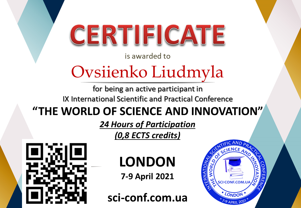 | 7000 | "THE WORLD OF SCIENCE AND INNOVATION" | "Актуальні проблеми інформатизації освітнього процесу в ЗВО" | Лондон, Великобритания |