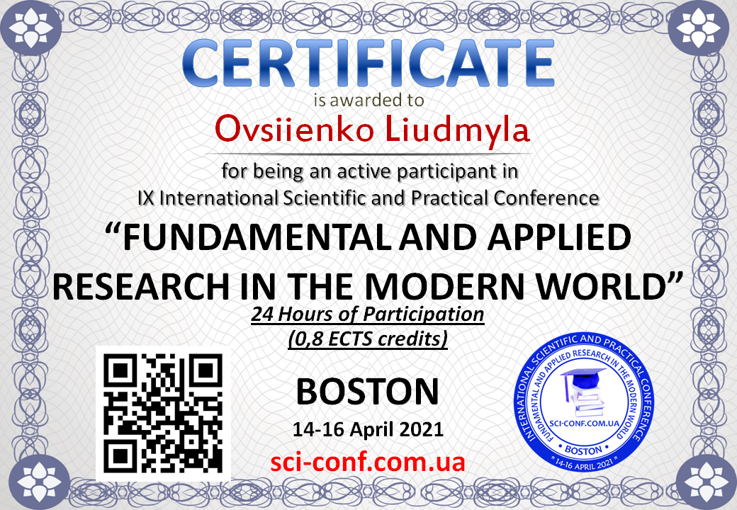 | 7001 | "FUNDAMENTAL AND APPLIED RESEARCH IN THE MODERN WORLD" | "Основні підходи до навчання української мови здобувачів-іномовців" | Бостон, США |