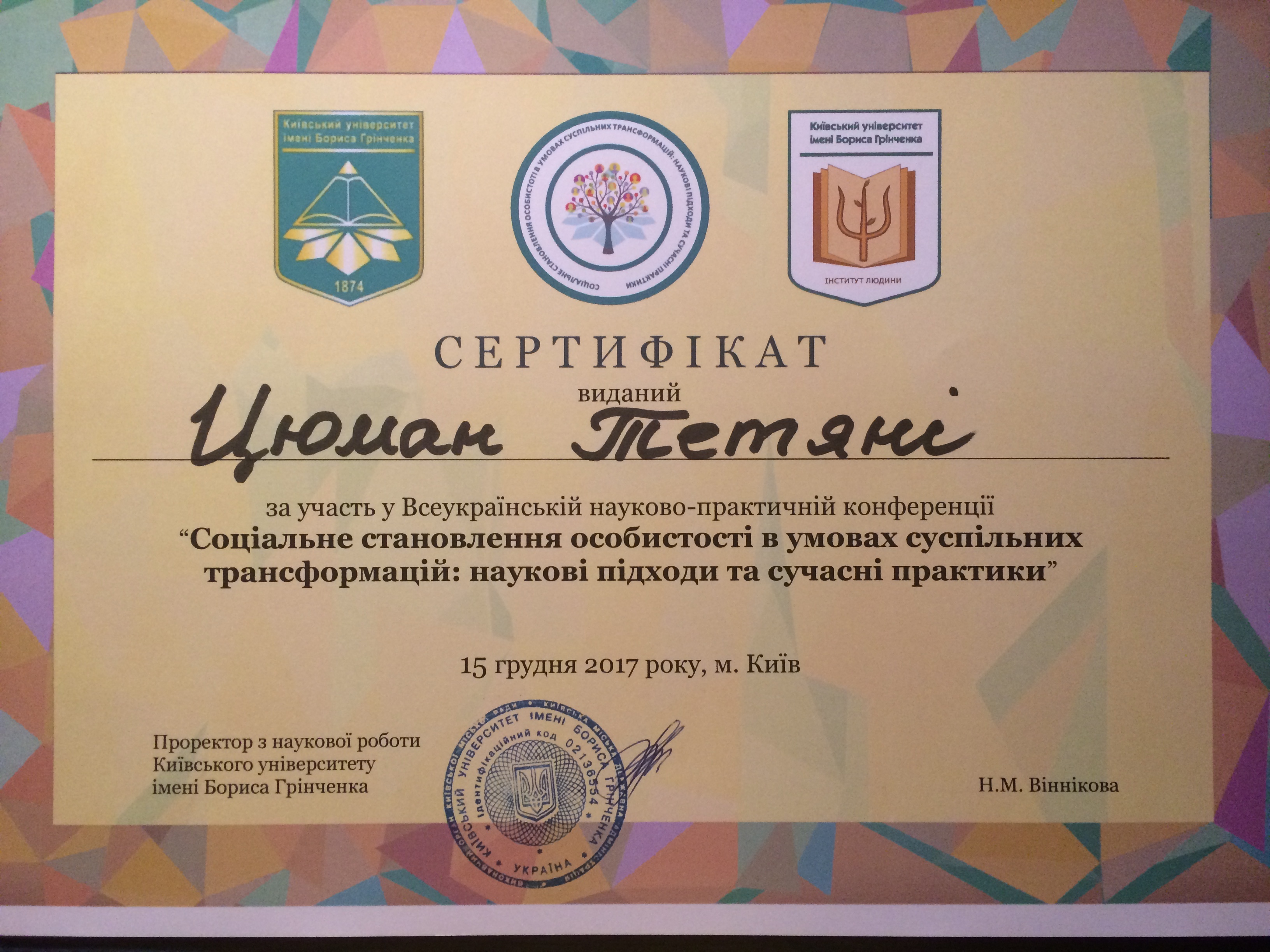 | 6047 | ІІ Всеукраїнська науково-практична онлайн-конференція «Соціальне становлення особистості в умовах суспільних трансформацій: наукові підходи та сучасні практики» | - | м. Київ | document.pdf | |