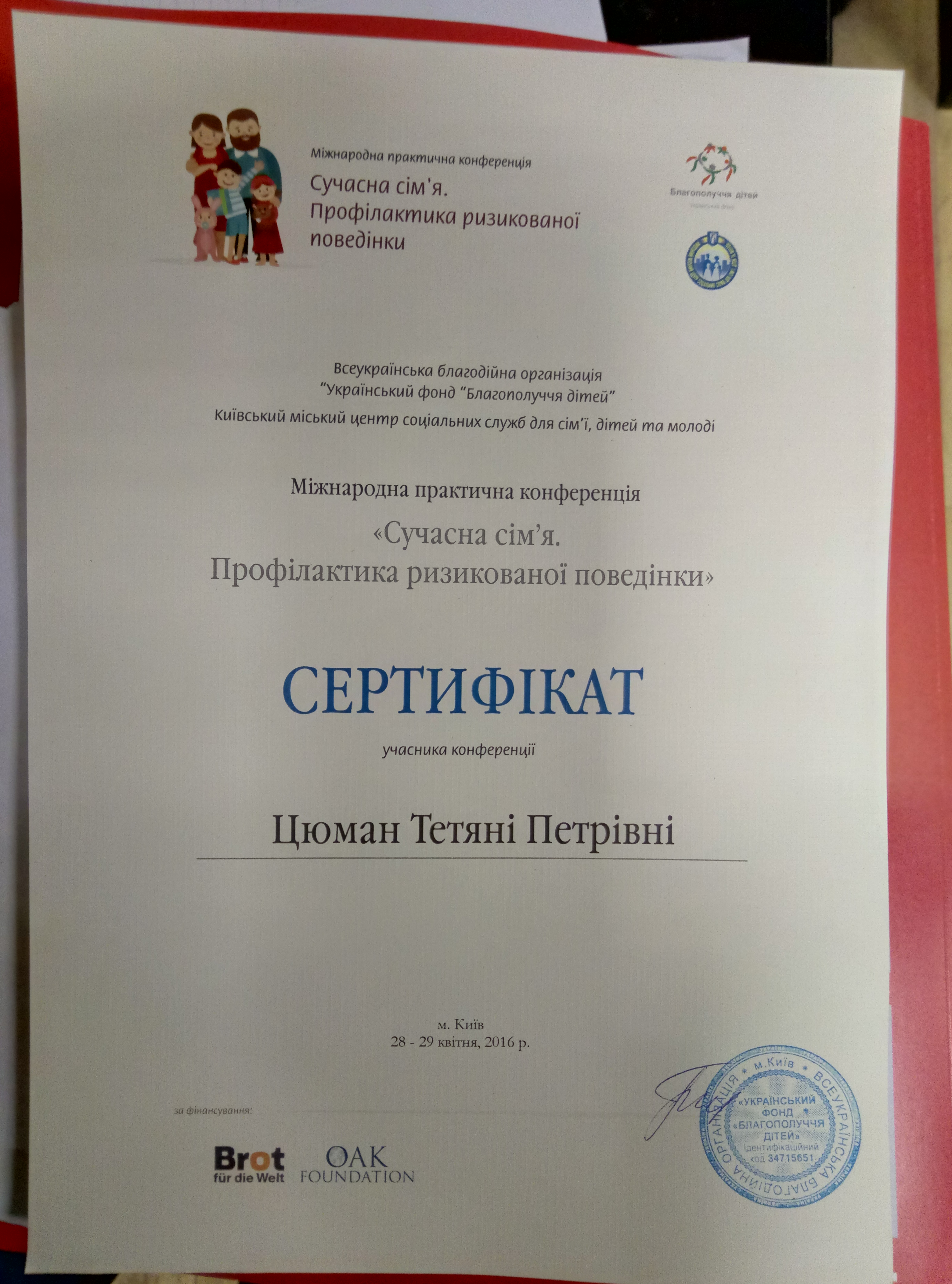 | 853 | «Сучасна сім’я. Профілактика ризикованої поведінки» | Розвиток навичок безпечної поведінки у дітей 4–6 років | м. Київ |