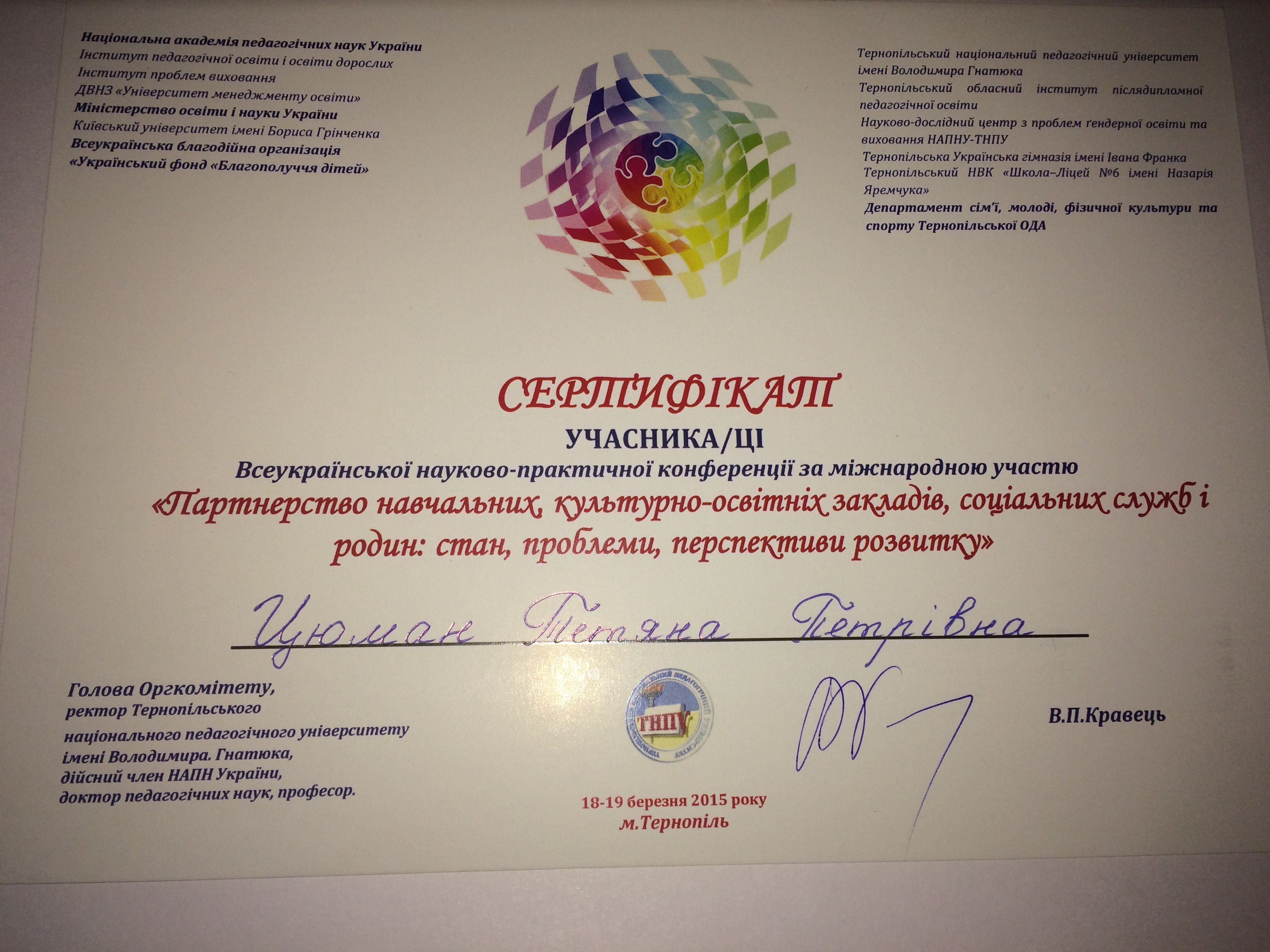 | 856 | Партнерство навчальних, культурно-освітніх закладів, соціальних служб і родин: стан, проблеми, перспективи розвитку | Сучасні технології освітньо-профілактичної роботи з підлітками та їх батьками у громаді | м. Тернопіль |