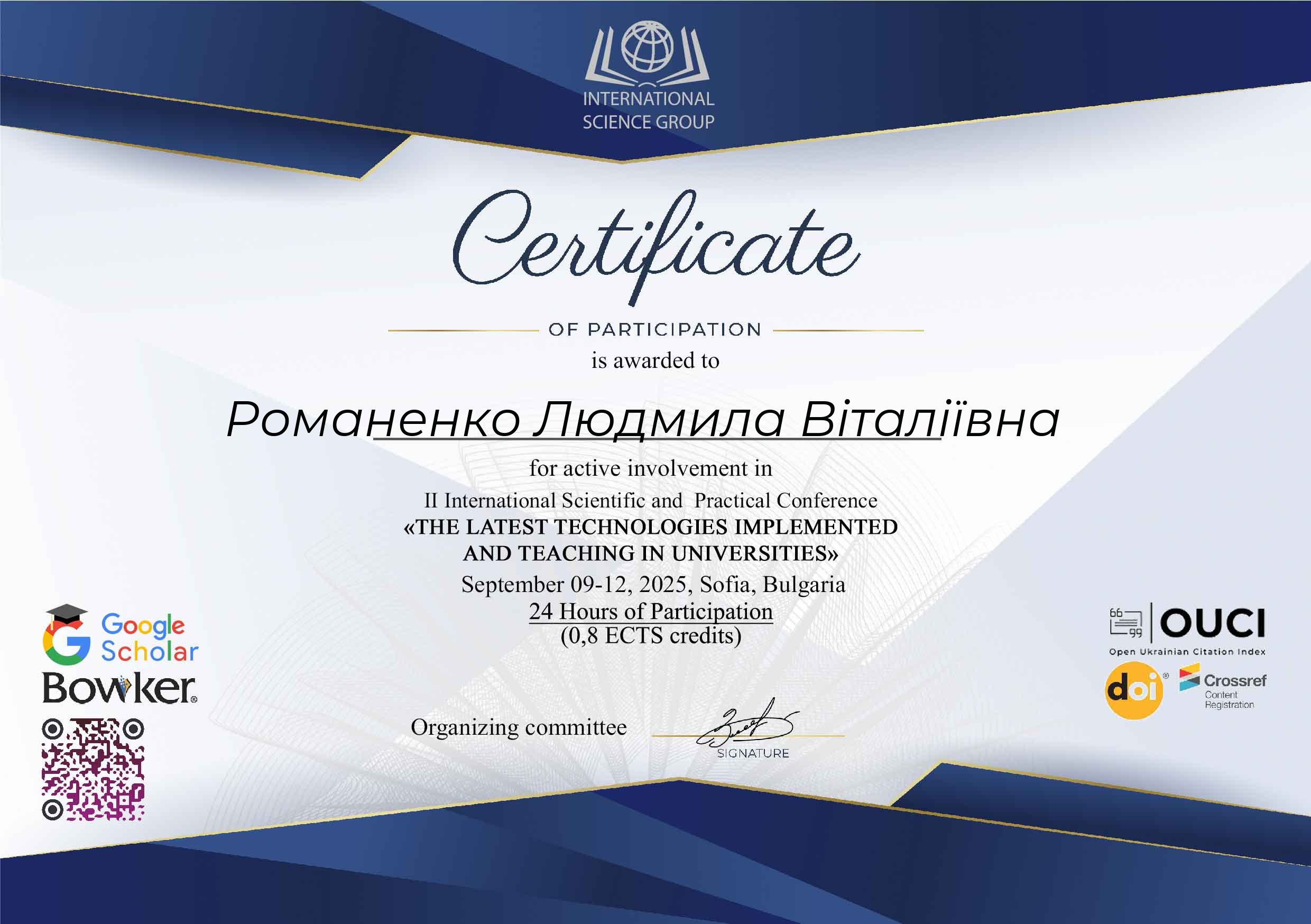 | 136 | Факультет педагогічної освіти | Кафедра початкової освіти | 153.8 | 1 | 2025 | https://www.researchgate.net/profile/Lyudmyla_Romanenko |