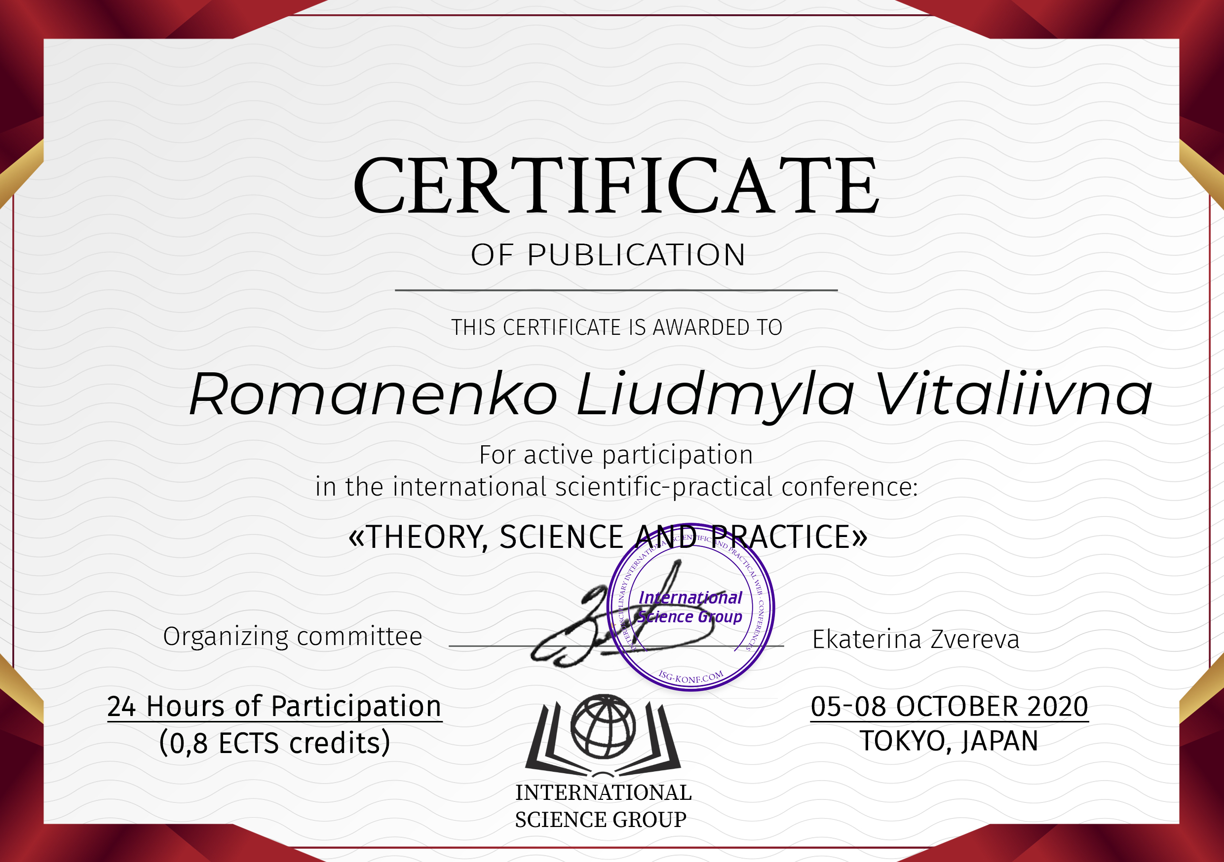 | 6105 | III International Scientific and Practical Conference. Tokio, Japan | Управління персоналом в закладах освіти: теоретичний вимір | Tokio, Japan |