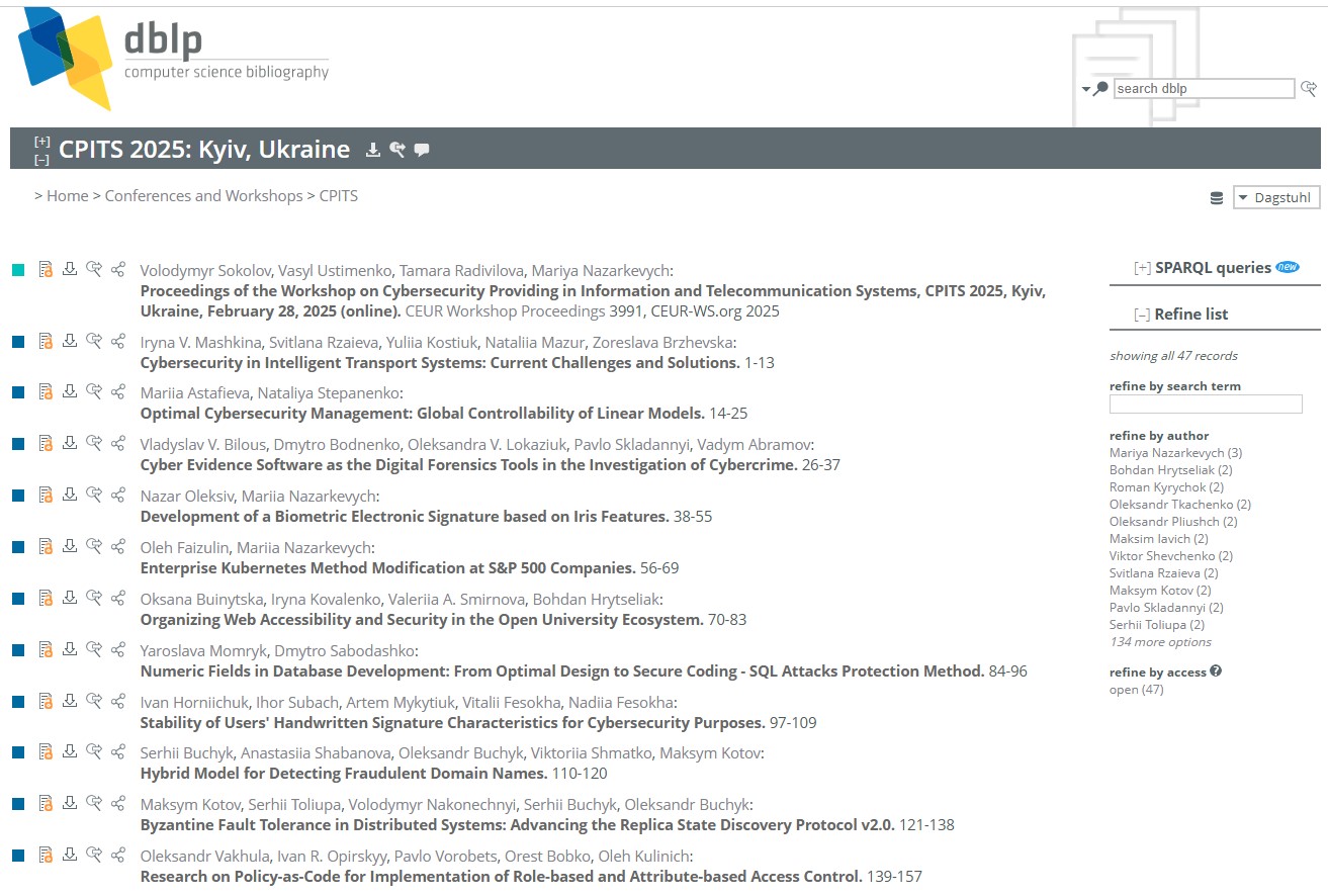 | 13031 | Cybersecurity Providing in Information and Telecommunication Systems 2025 (CPITS 2025) | Organizing Web Accessibility and Security in the Open University Ecosystem. | - |