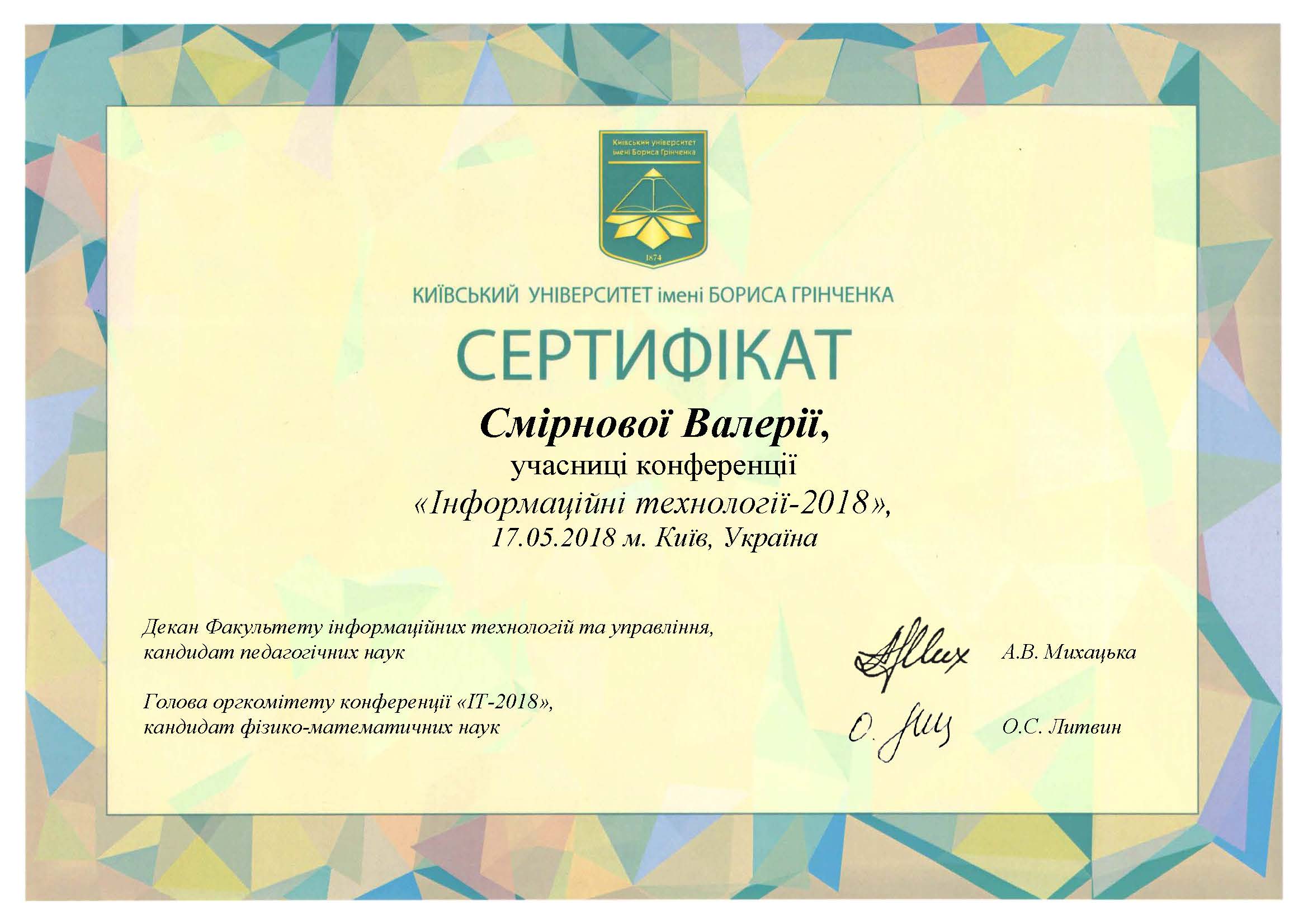 | 1791 | III Міжнародна науково-практична конференція | E-portfolio as an assessment tool of the student's activities | м. Київ |