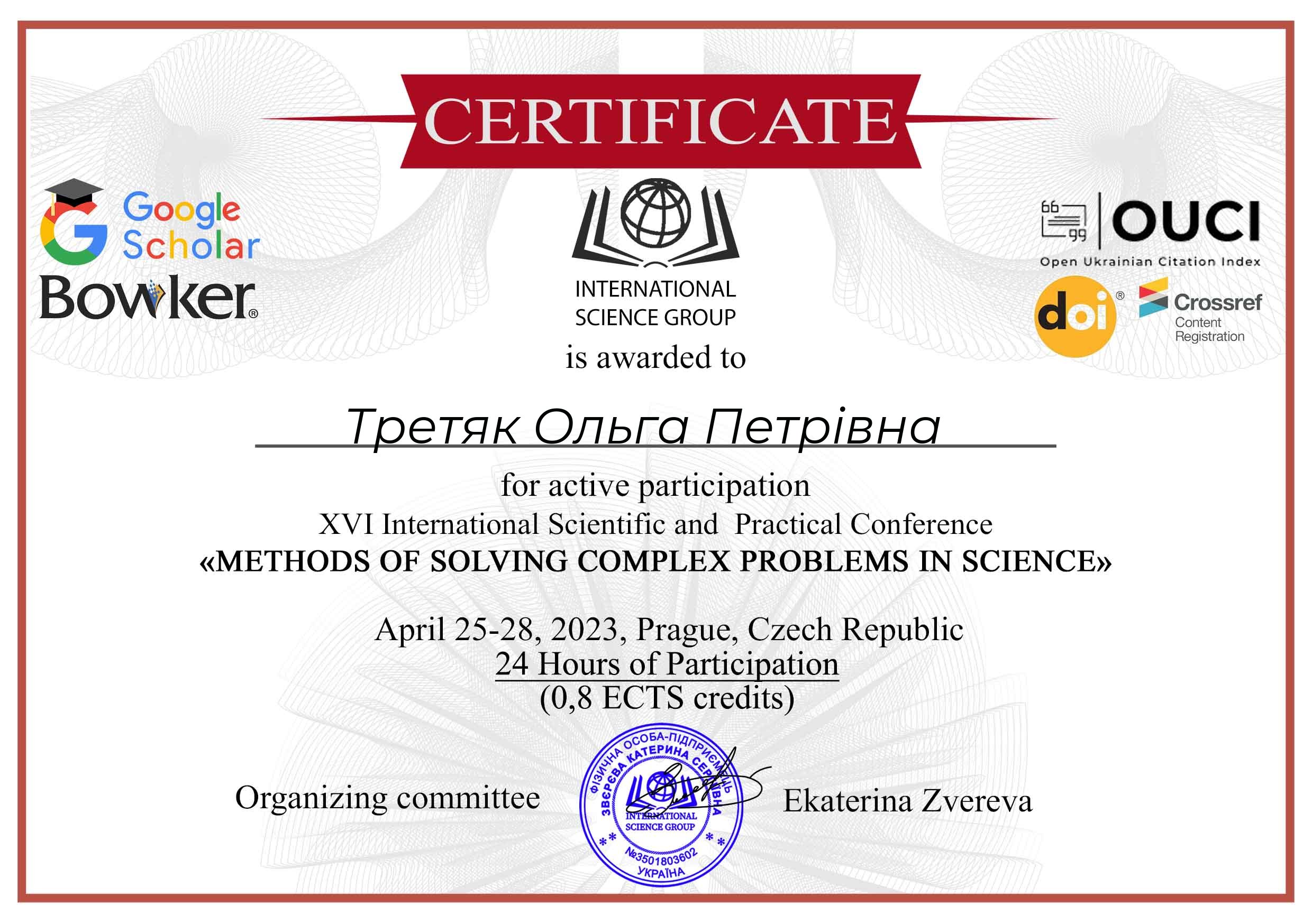 | 10002 | «Methods of solving complex problems in science» | Розвиток навичок співпраці в учнів початкової школи | Prague, Czech Republic |