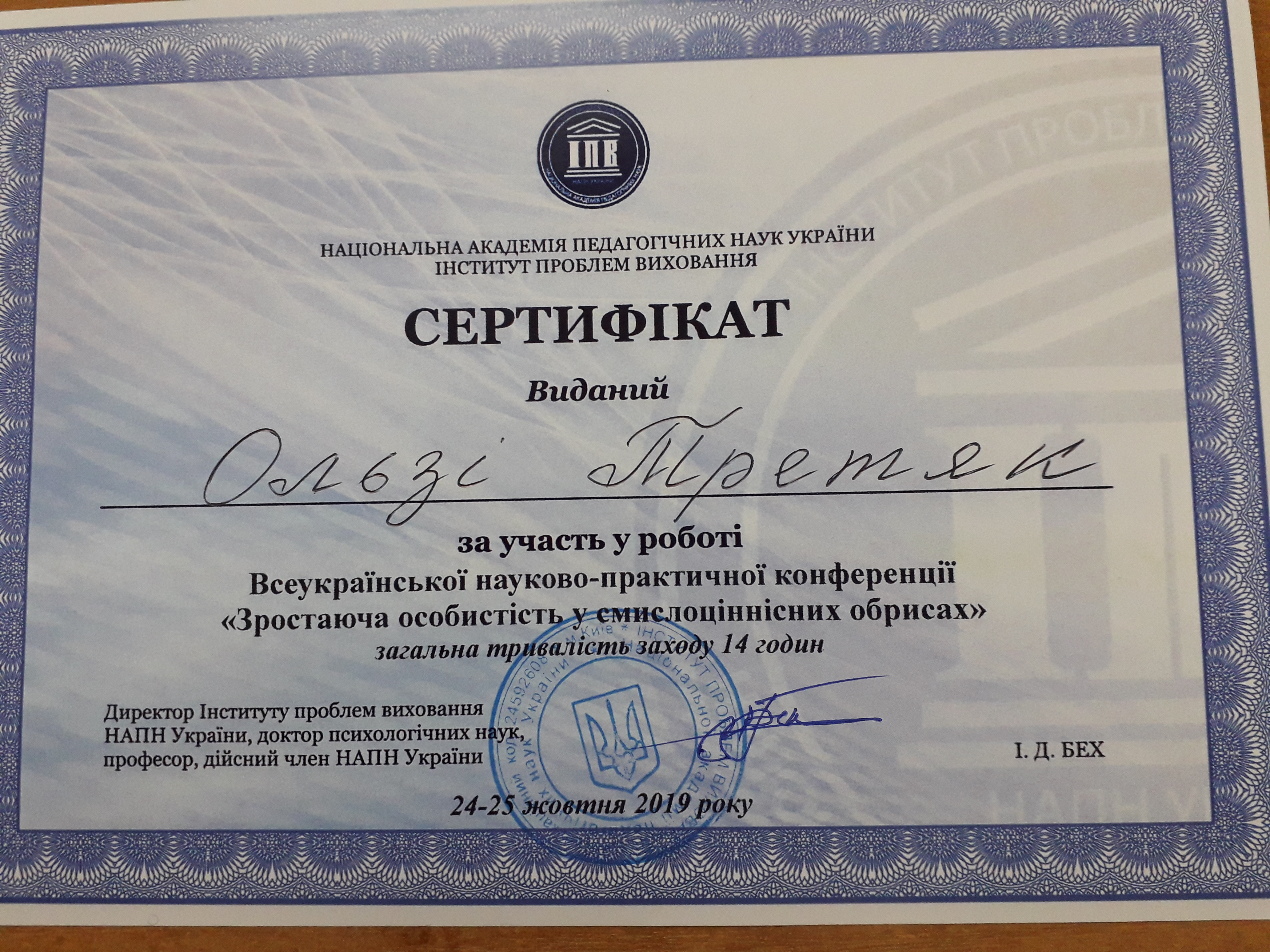 | 6652 | Участь у Всеукраїнській науковій конференції «Навчання української мови та мов національних меншин учнів закладів загальної середньої освіти в контексті компетентнісного підходу» | Філософські запитання для спільноти допитливих на уроках літературного читання | м. Київ Україна | document.pdf | |