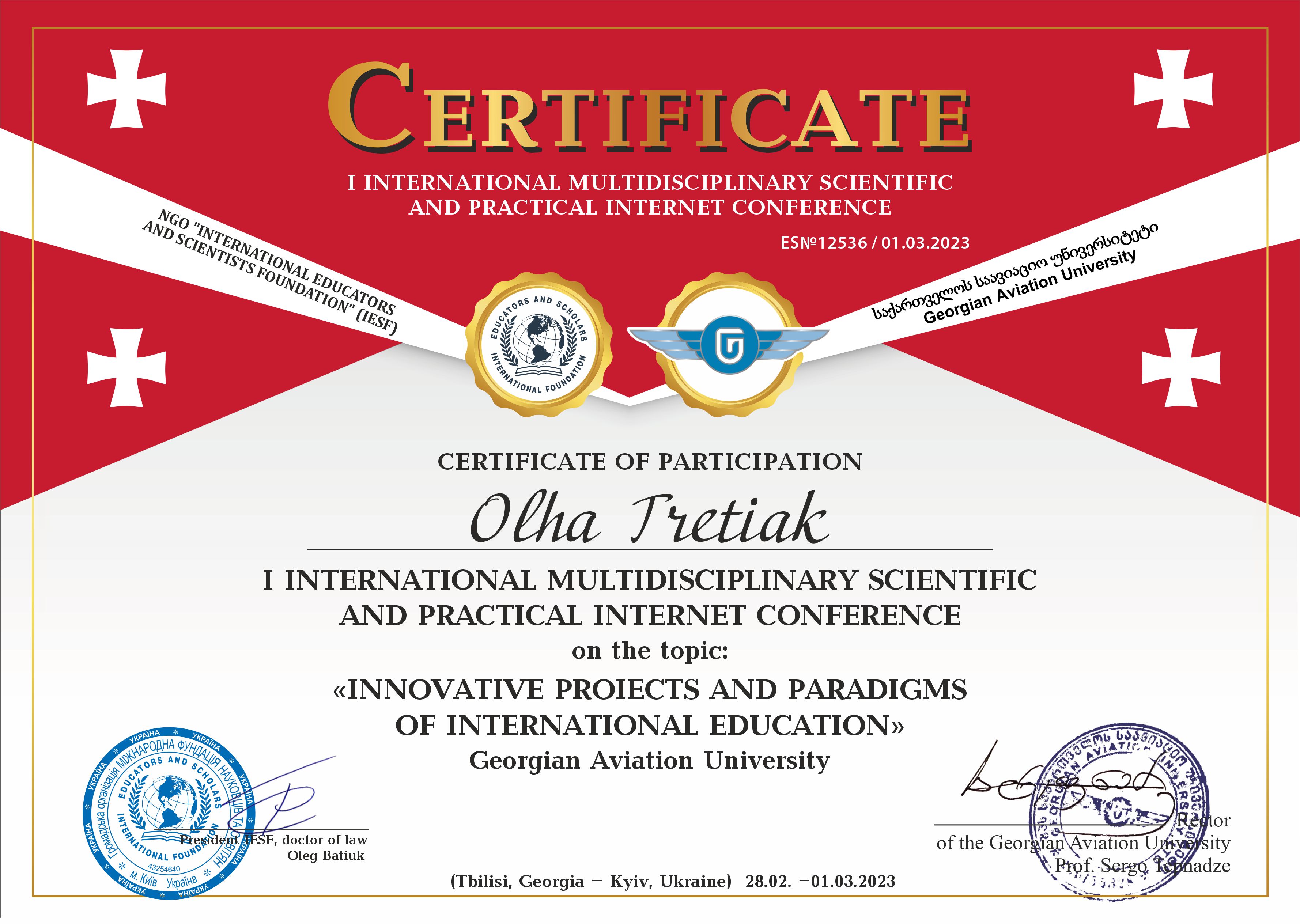 | 9072 | I Міжнародна науково-практична інтернет-конференція "ІННОВАЦІЙНІ ПРОЄКТИ ТА ПАРАДИГМИ МІЖНАРОДНОЇ ОСВІТИ" | Сторітелінг як метод критичного мислення | Тбілісі, Грузія-Київ, Україна |