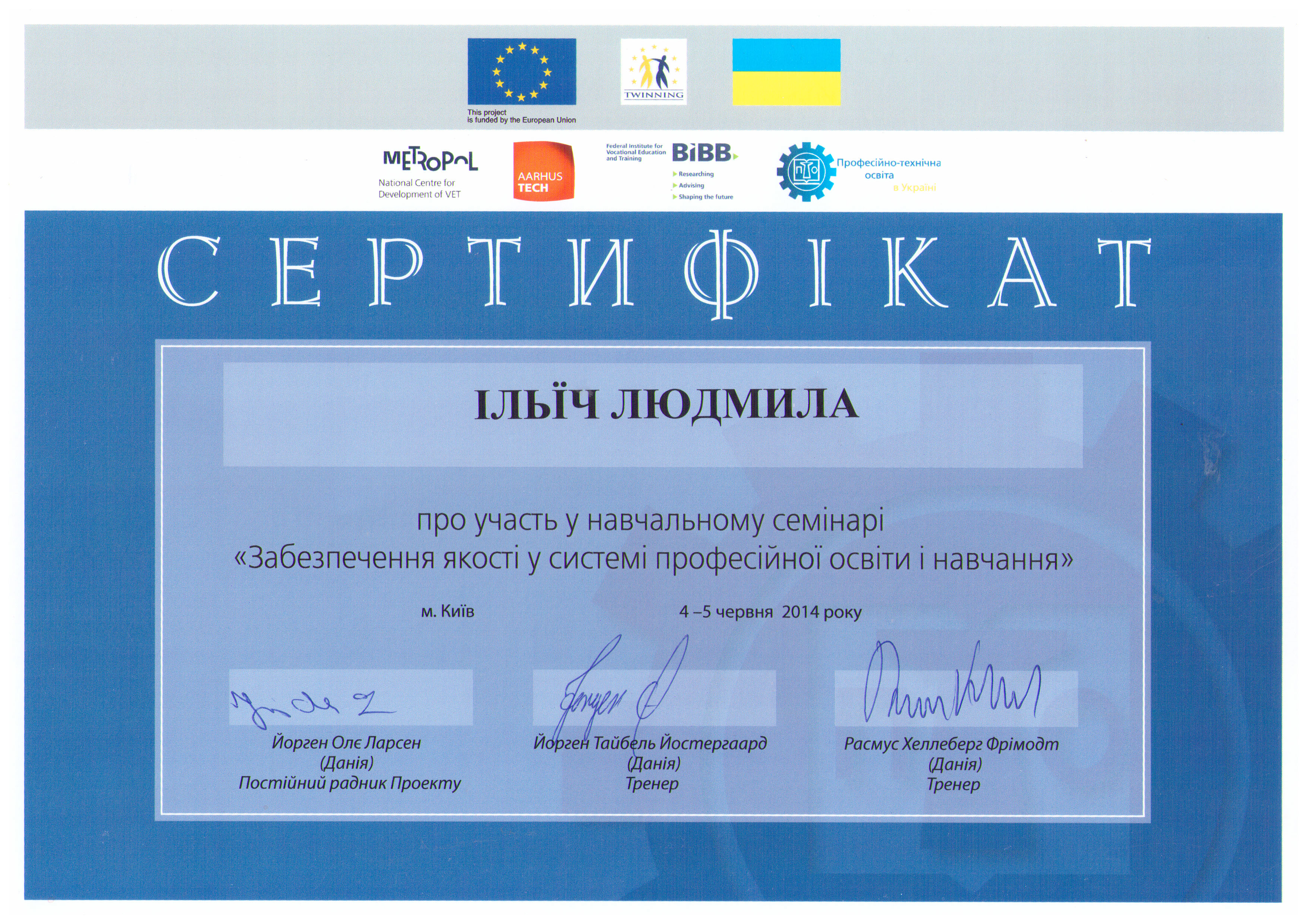 | 4331 | Забезпечення якості у системі професійної освіти і навчання | Європейські стандарти розвитку освіти та їнструменти їх реалізації в Україні | Київ |