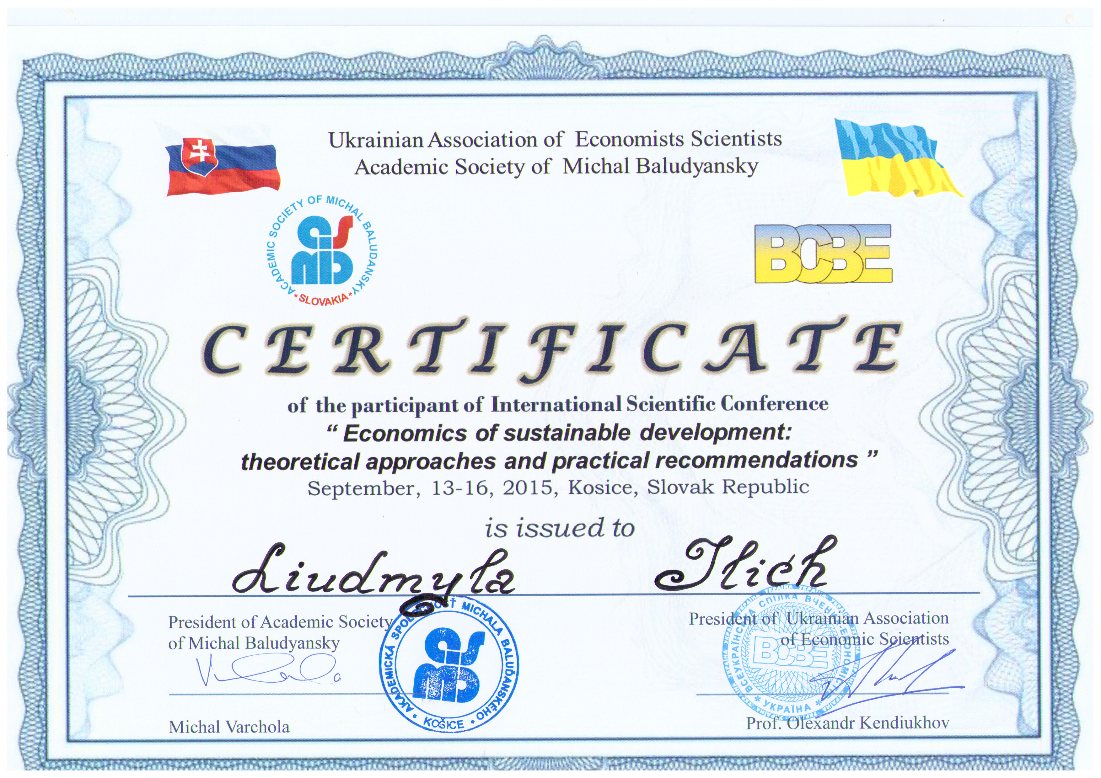 | 4335 | International Scientific Conference «Economics of sustainable development: theoretical approaches and practical recommendations» | The practical approaches to overcome skills mismatch: international practice and Ukraine experience | Kosice, Slovak Republic |