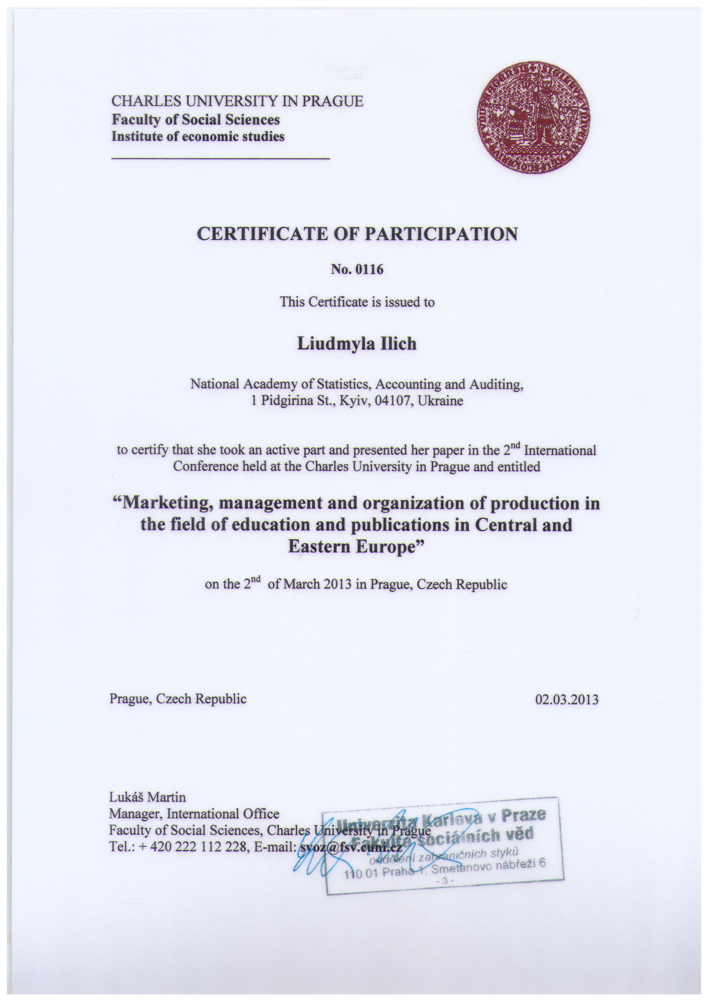 | 4336 | International scientific conference «Marketing, management and organization of production in the field of education and publication in Central and Eastern Europe» | Education market and educational services in the context of modern society development | Prague, Czech Republic |