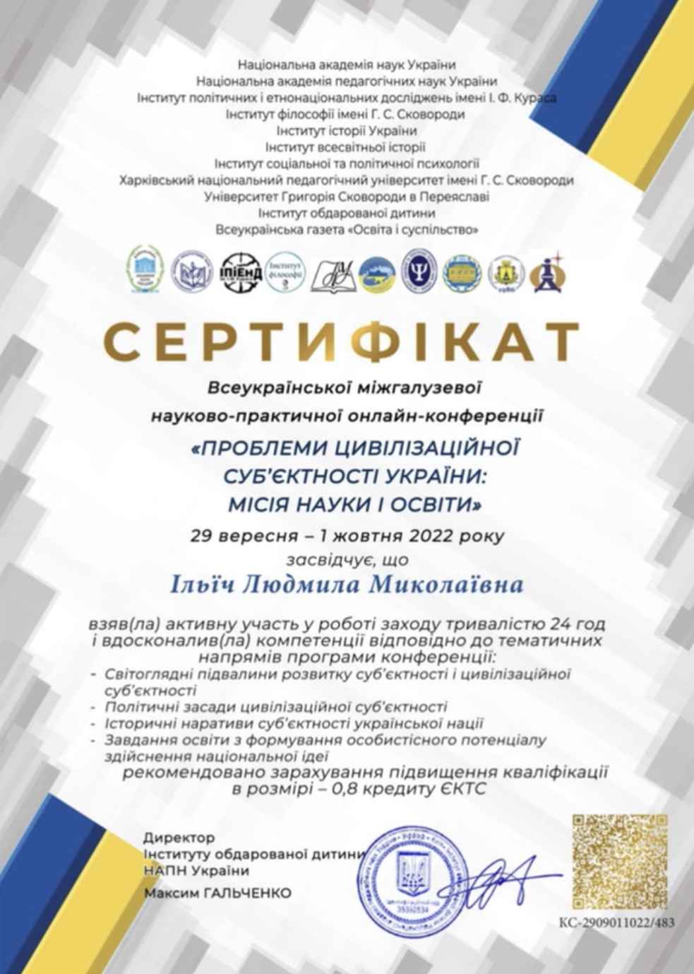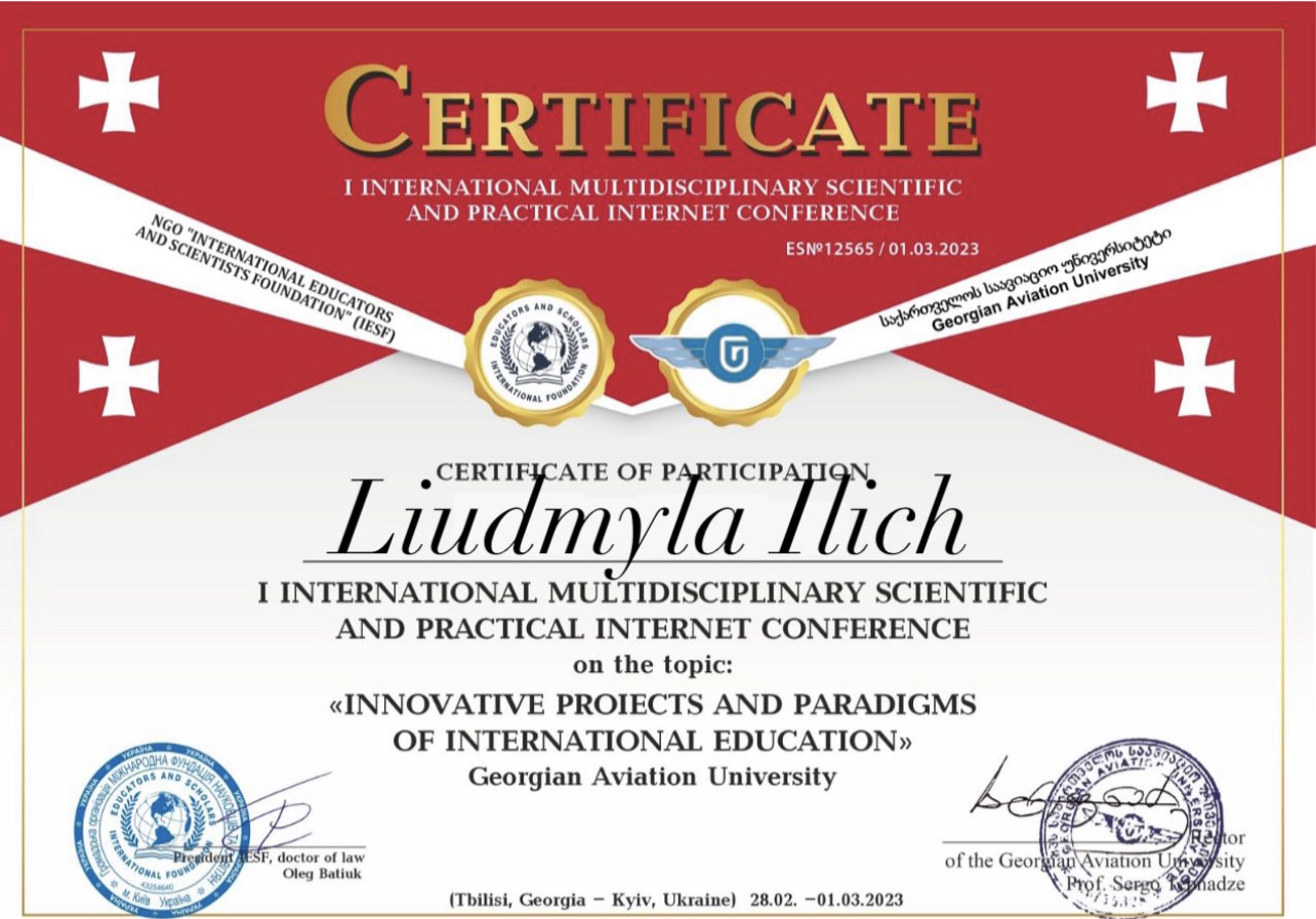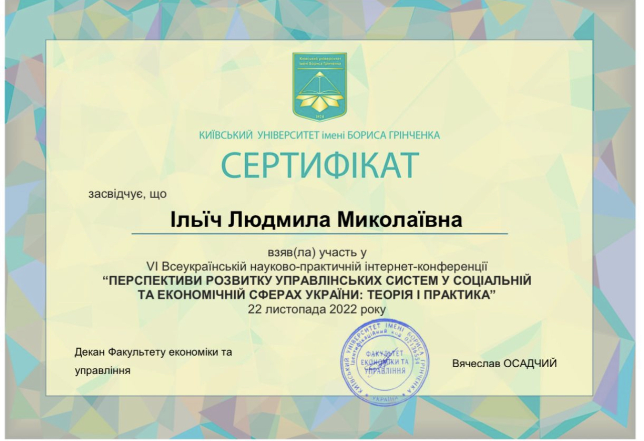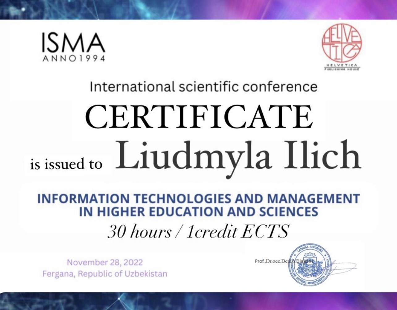 | 806 | Факультет економіки та управління | Кафедра управління | 125.9 | 4 | 2025 | https://www.researchgate.net/profile/Liudmyla-Ilich |