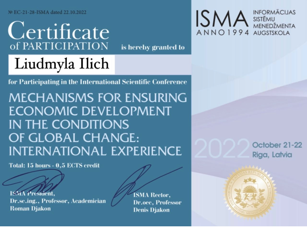 | 8782 | International scientific conference | Mechanisms for ensuring economic development in the conditions of global change:international experience | Riga, Latvia |