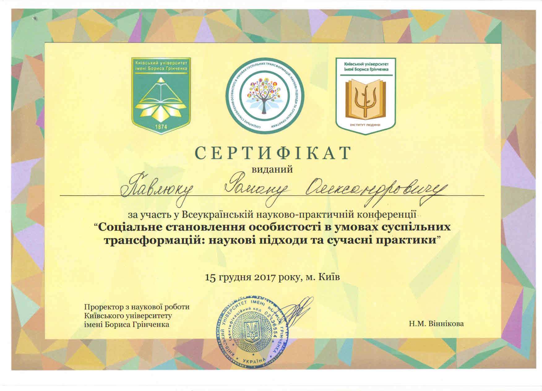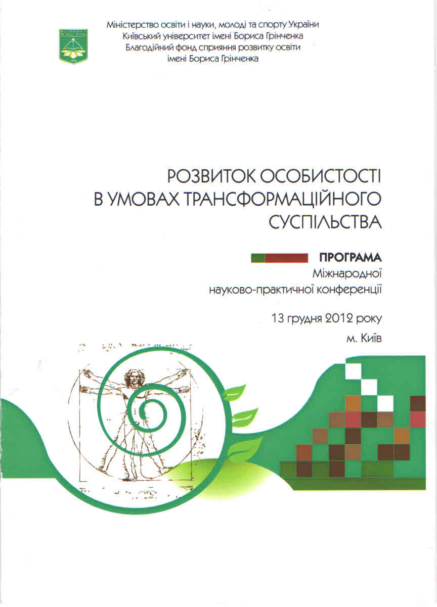| 1140 | Соціальне становлення особистості в умовах суспільних трансформацій | Всеукраїнська науково-практична конференція | Київський університет імені Бориса Грінченка | 15.12.2017 00:00 | 5 |