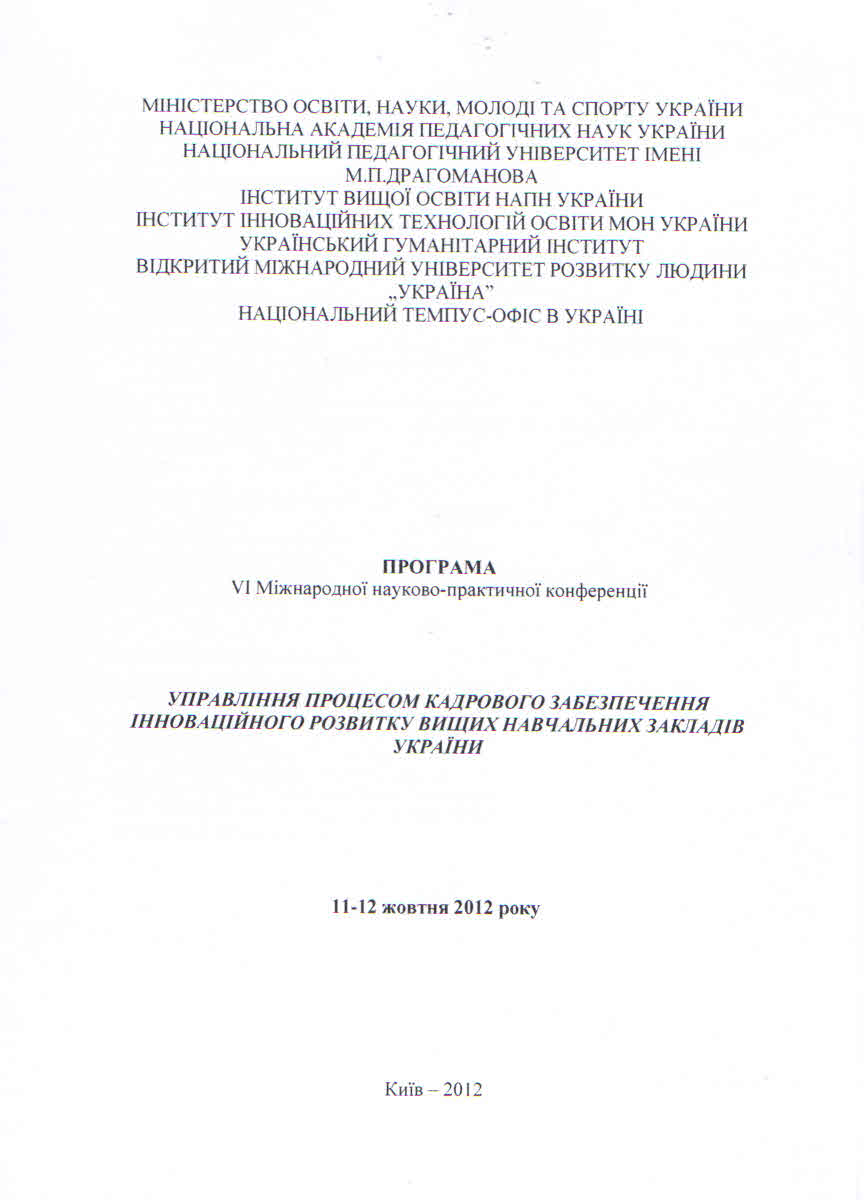 | 601 | VI Міжнар. наук.-практ. конф. [«Управління процесом кадрового забезпечення інноваційного розвитку вищих навчальних закладів України»] | Формування мовленнєвої компетенції педагога у віртуально-навчальному іншомовному середовищі | смт Буча, Київська обл., Інститут вищої освіти НАПН України |