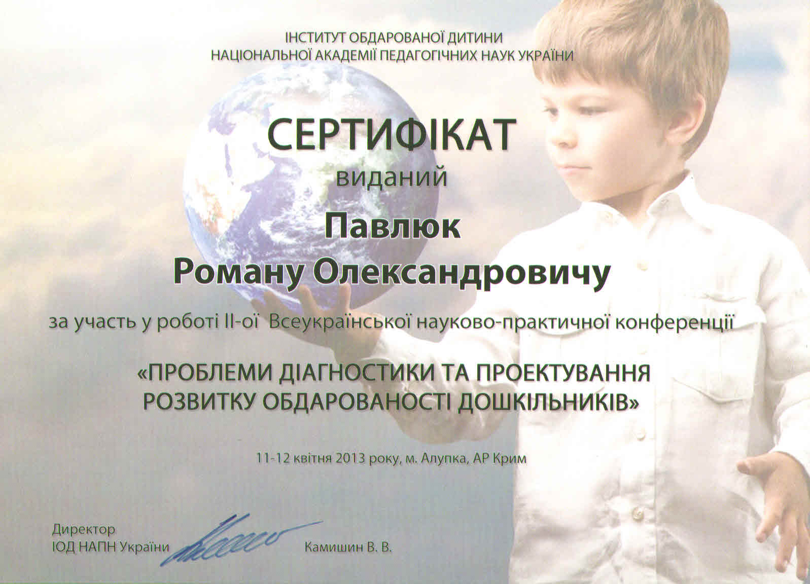 | 605 | II Всеукр. наук.-практ. конф. [«Проблеми діагностики та проектування розвитку обдарованих дошкільників»] | Мистецькі педагогічні технології у структурі навчально-виховної діяльності вчителя початкової школи з обдарованими дітьми | м. Алупка, АР Крим |