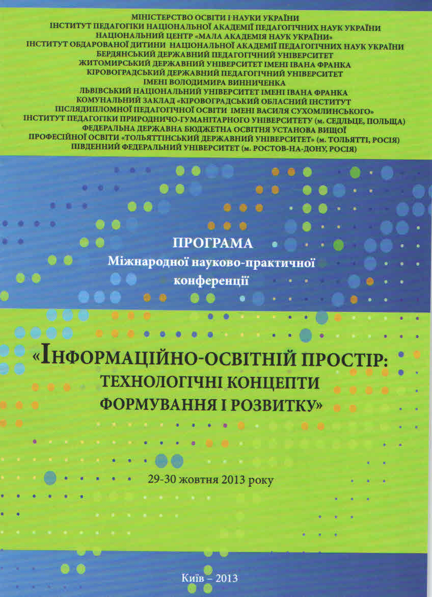 | 608 | І Міжнар. наук.-практ. конф. [«Інформаційно-освітній простір: технологічні концепти формування»] | Інформаційна компетентність та інформаційна культура сучасного фахівця | м. Київ, Національний центр 'Мала академія наук України' |