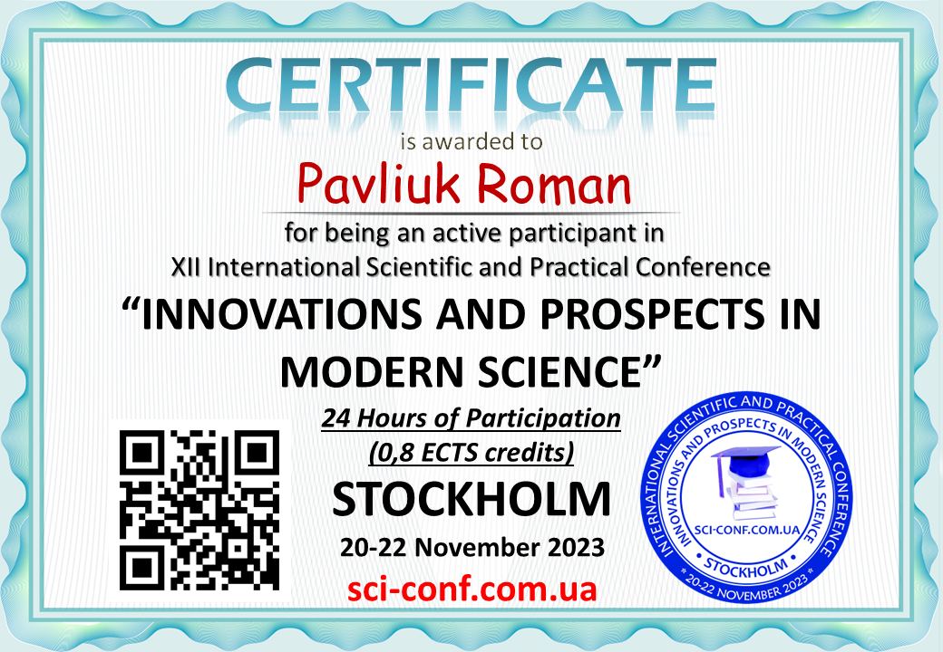 | 23 | Інститут людини | C-2079-2014 | 3 | 1 | 2021 | https://publons.com/researcher/1275998/roman-pavliuk/ |