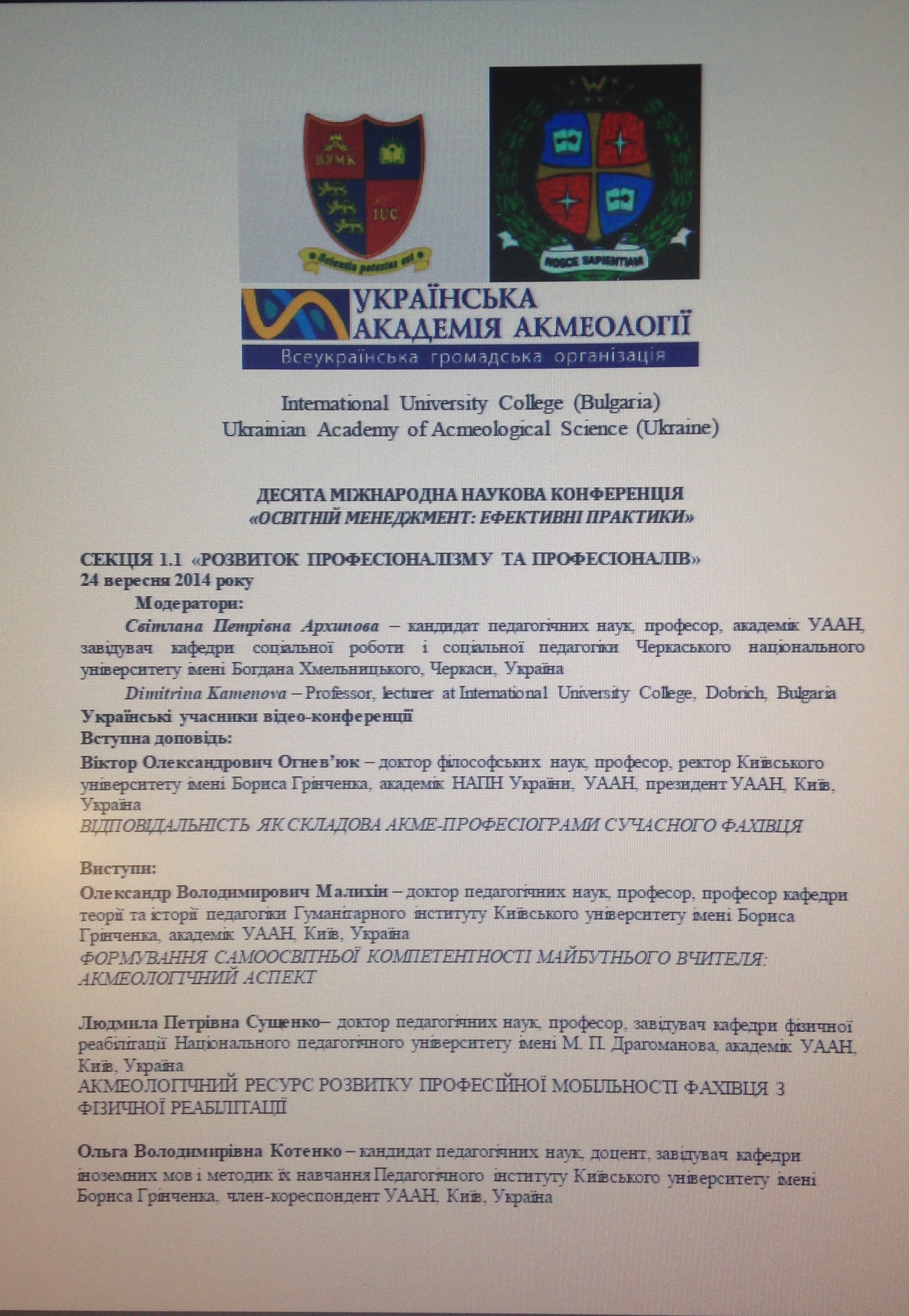 | 819 | «ОСВIТНIЙ МЕНЕДЖМЕНТ: ЕФЕКТИВНI ПРАКТИКИ» | КОМУНІКАЦІЯ ЯК ДЕСКРИПТОР НАЦІОНАЛЬНОЇ РАМКИ КВАЛІФІКАЦІЙ | International University College (Bulgaria) |