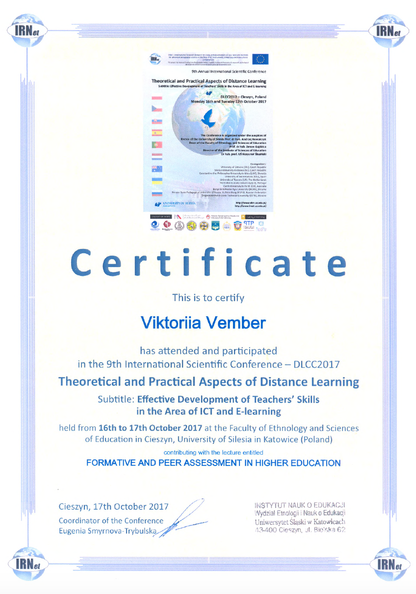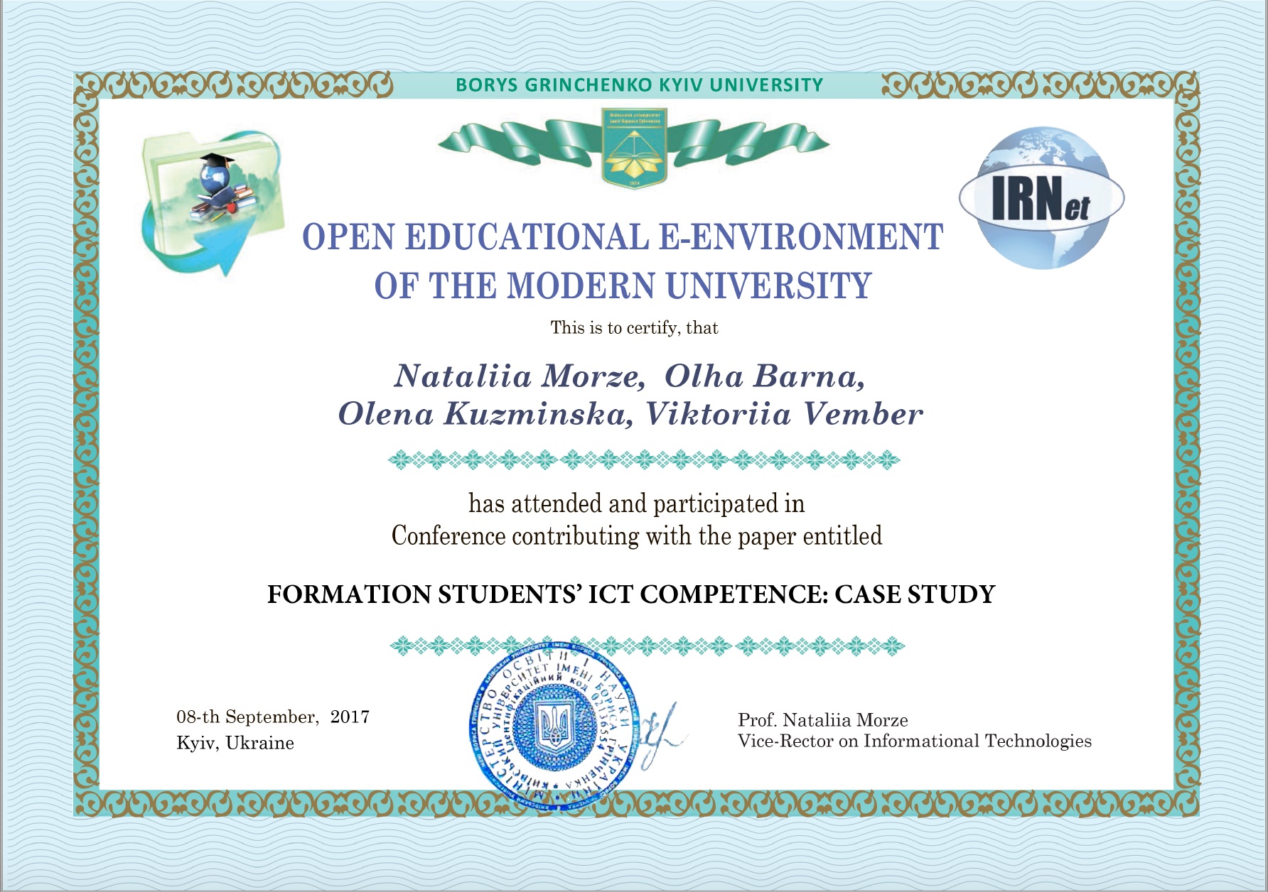 | 69 | Власенко Юлія Анатоліївна | VI | Інформаційно-комунікаційні технології в освіті | I | 2018 |