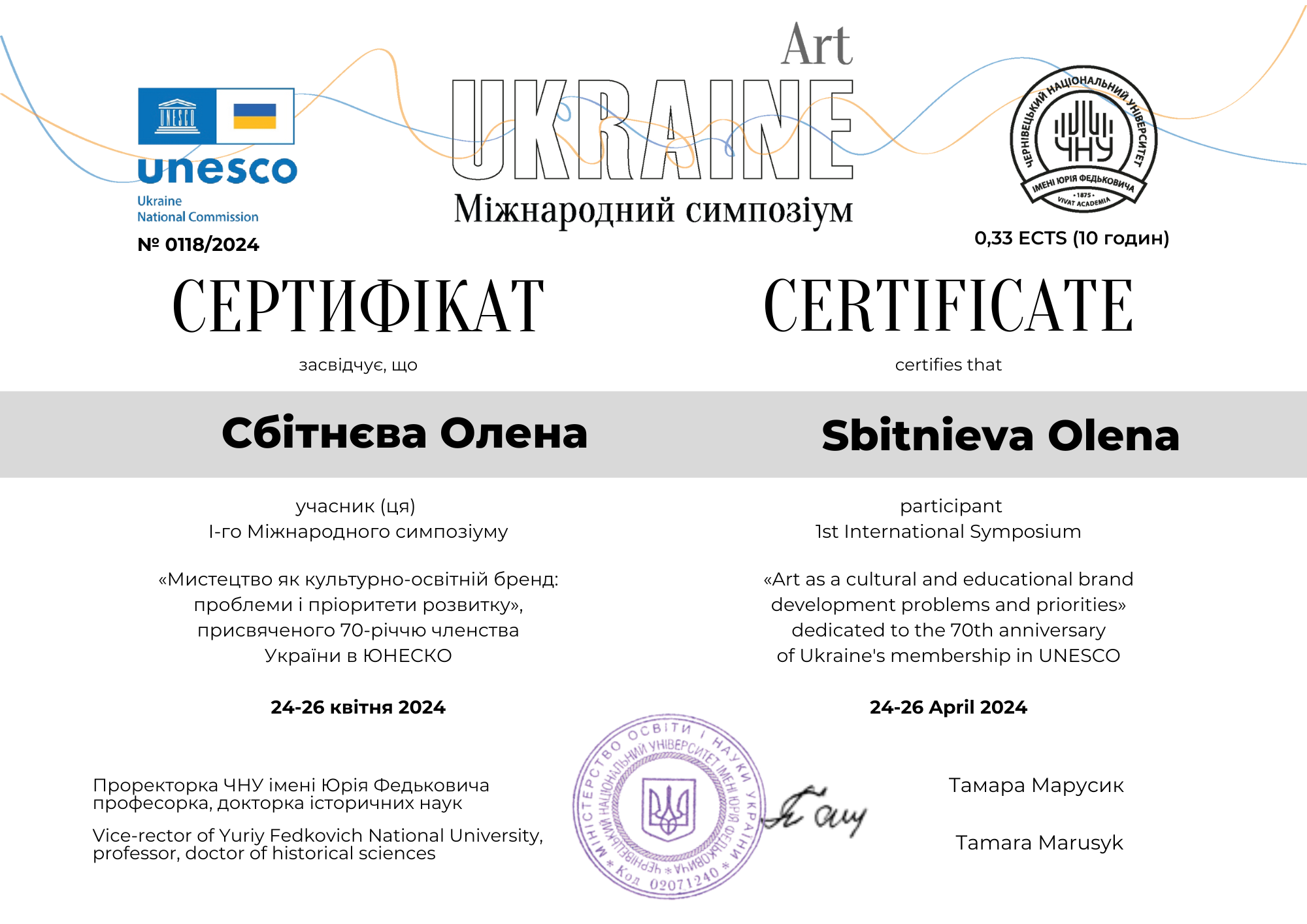 мистецтво”, здобула кваліфікацію