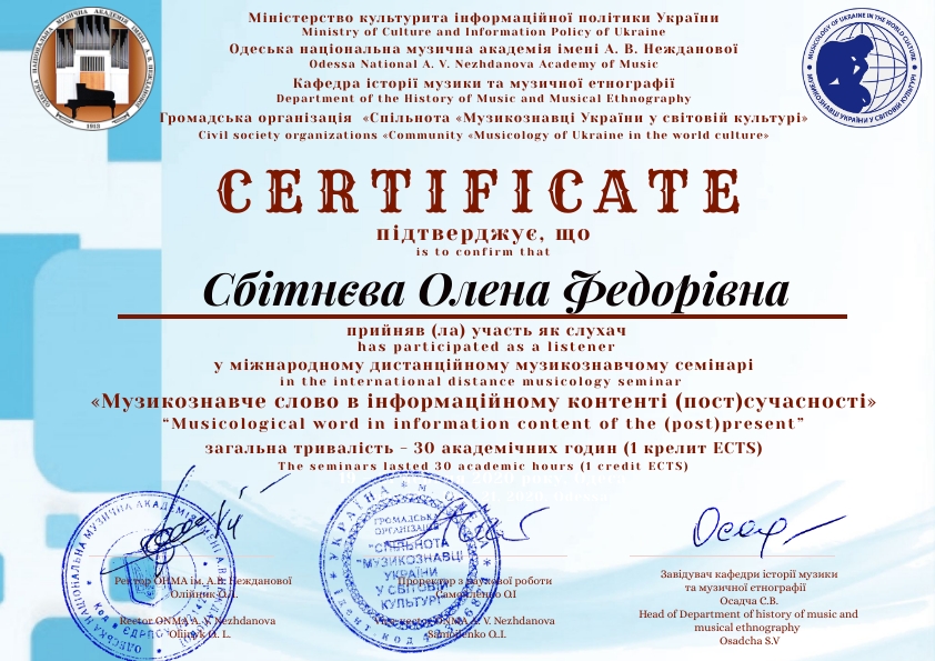 | 5439 | МІЖНАРОДНИЙ МУЗИКОЗНАВЧИЙ СЕМІНАР МУЗИКОЗНАВЧЕ СЛОВО В ІНФОРМАЦІЙНОМУ КОНТЕНТІ (ПОСТ)СУЧАСНОСТІ | 19 – 21 червня 2020 року | комунікаційна платформа ZOOM |