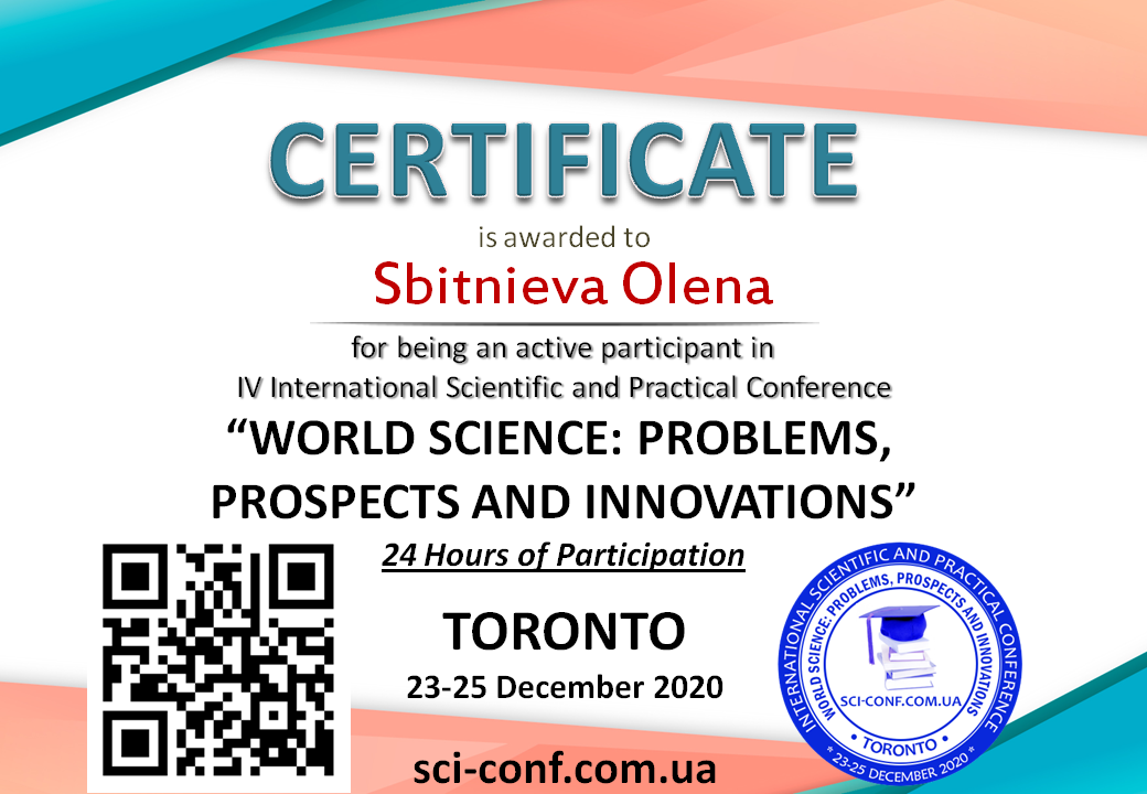 | 6504 | «WORLD SCIENCE: PROBLEMS, PROSPECTS AND INNOVATIONS» | РОЗВИТОК ТРАДИЦІЙ ХОРОВОГО МИСТЕЦТВА В УКРАЇНІ | Торонто, Канада |