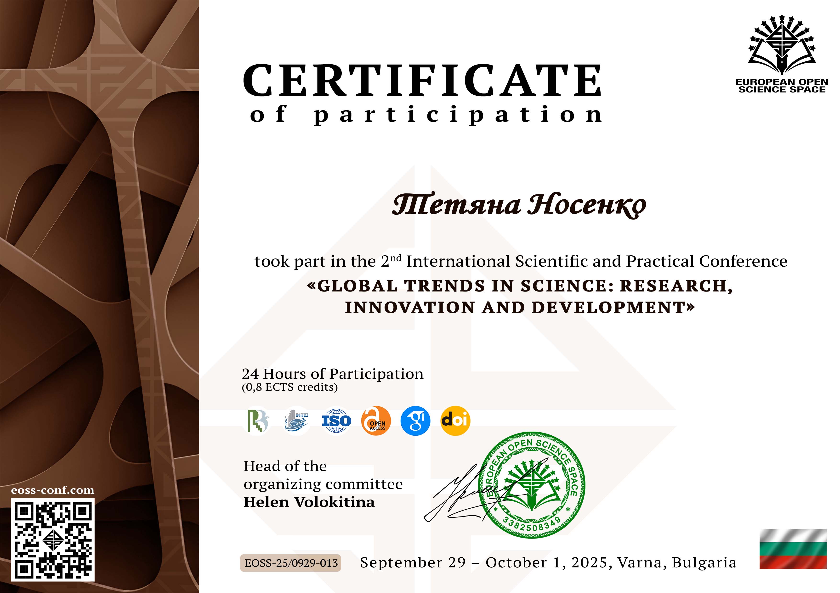 | 12819 | II International Scientific-Practical Conference “Global Trends in Science—Research, Innovation and Development” | Алгоритм семантичної верифікації даних для кібербезпеки систем моніторингу на БПЛА | Varna, Bulgaria |