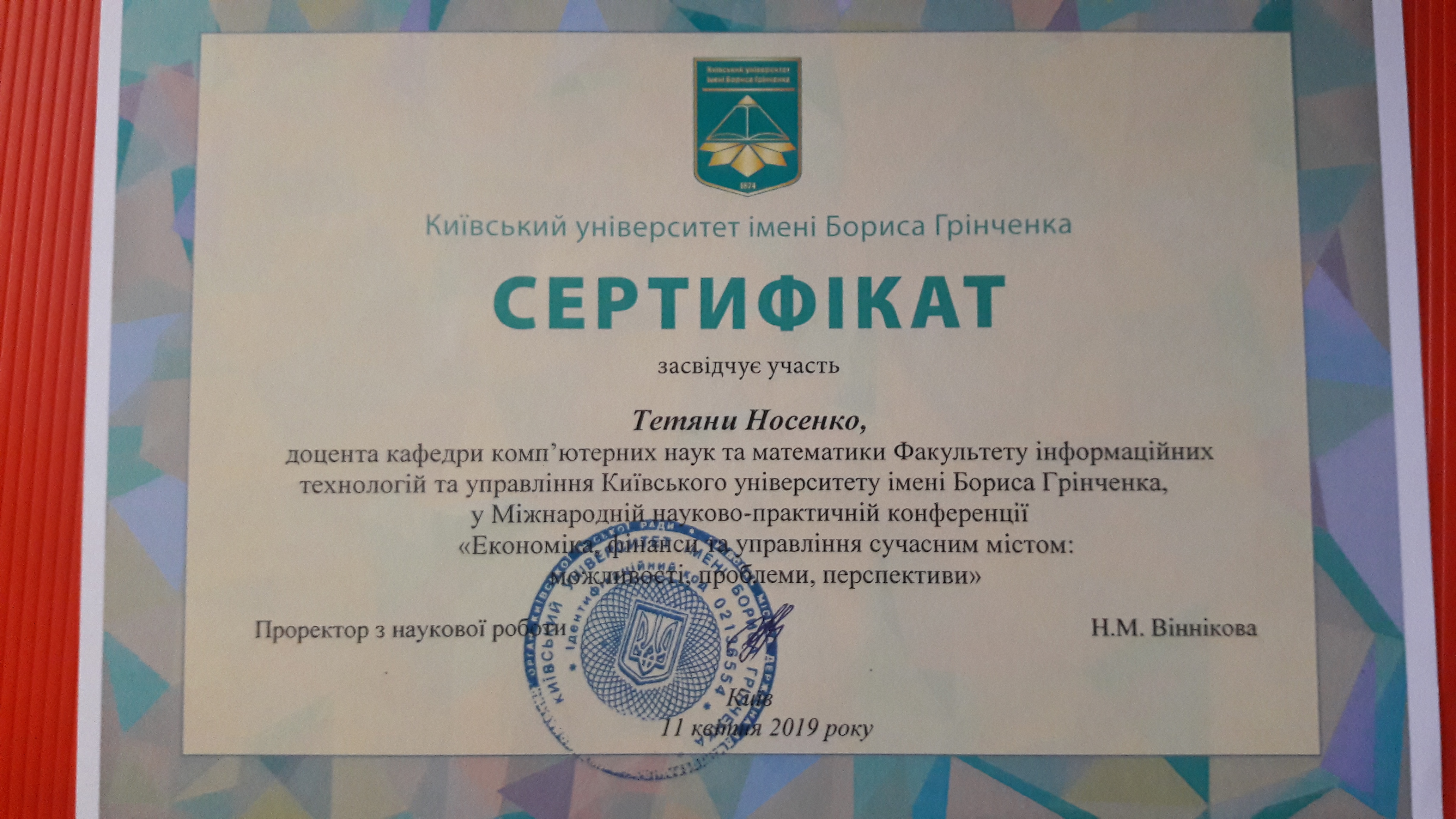 | 4572 | Міжнародна науково-практична конференція «Економіка, фінанси та управління сучасним містом: можливості, проблеми перспективи» | Цифрове відтворення економічних ресурсів міста | Київ |