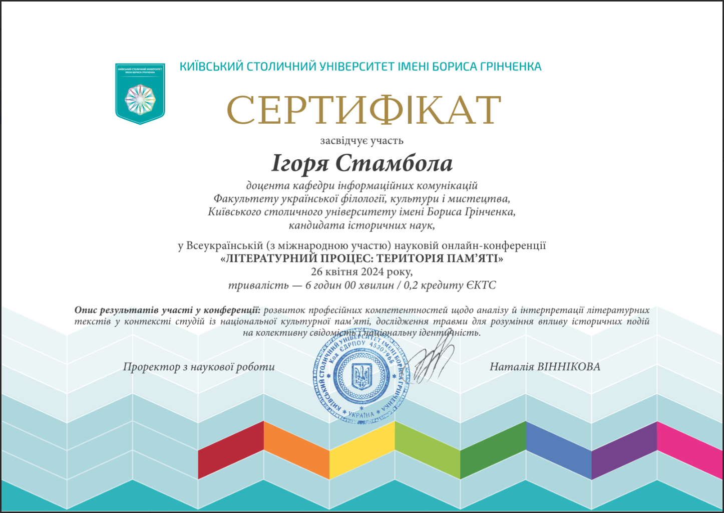 11180 Всеукраїнській (з міжнародною участю) науковій онлайн-конференції «ЛІТЕРАТУРНИЙ ПРОЦЕС: ТЕРИТОРІЯ ПАМʼЯТІ» Наш Грінченко: образи, візії, памʼять. Київ document