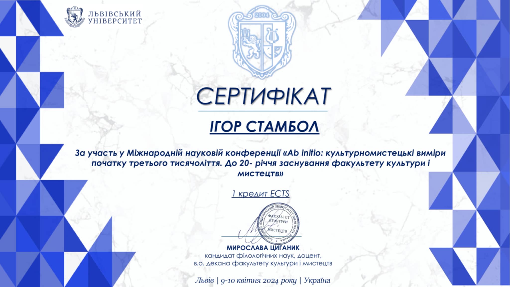 ID ПІБ студента Інститут / факультет Курс (період навчання) Назва заходу Місце проведення заходу Рік Тип заходу Призове місце Документ, що засвідчує