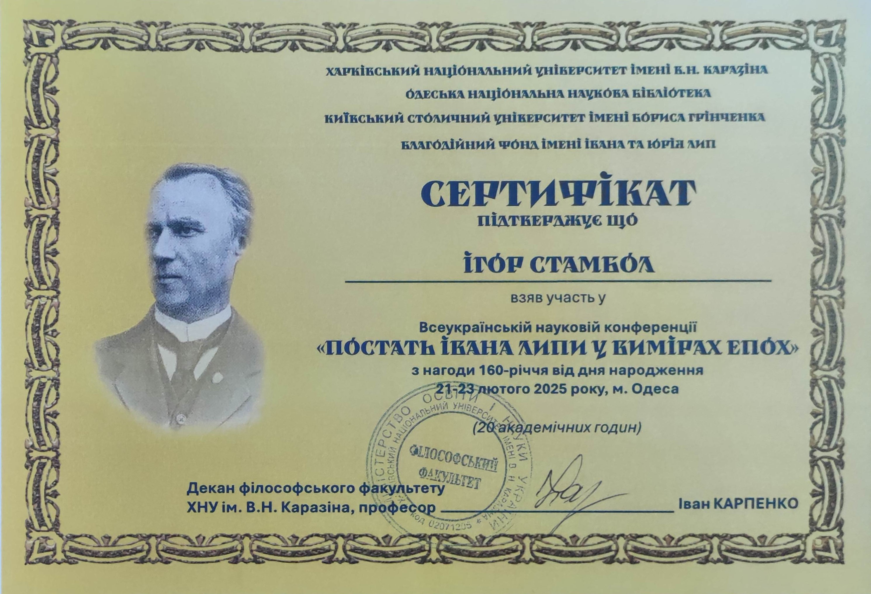 12781 "Постать Івана Липи у вимірах епох" з нагоди 160-річчя від дня народження ІВАН ЛИПА І ВАЖЛИВІСТЬ КОММЕМОРАЦІЇ У ЧАС ЗБРОЙНОЇ БОРОТЬБИ м.Одеса, Одеська національна наукова бібліотека document
