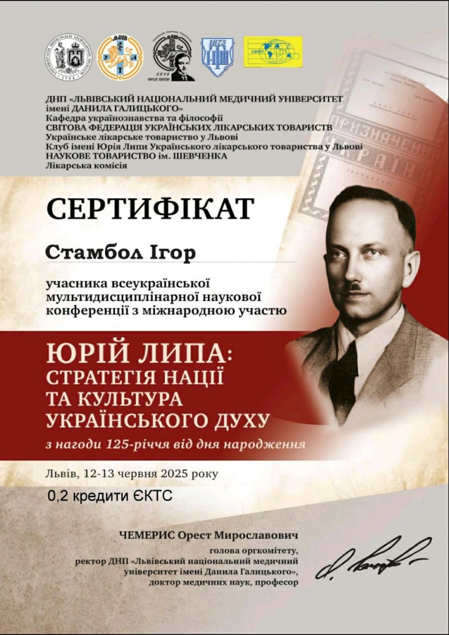 12782 «ЮРІЙ ЛИПА: СТРАТЕГІЯ НАЦІЇ ТА КУЛЬТУРА УКРАЇНСЬКОГО ДУХУ» (з нагоди 125-річчя від дня народження) Ювілеї Івана та Юрія Лип і перспективи липознавства Львів, ДНП «Львівський національний медичний університет імені Данила Галицького» document