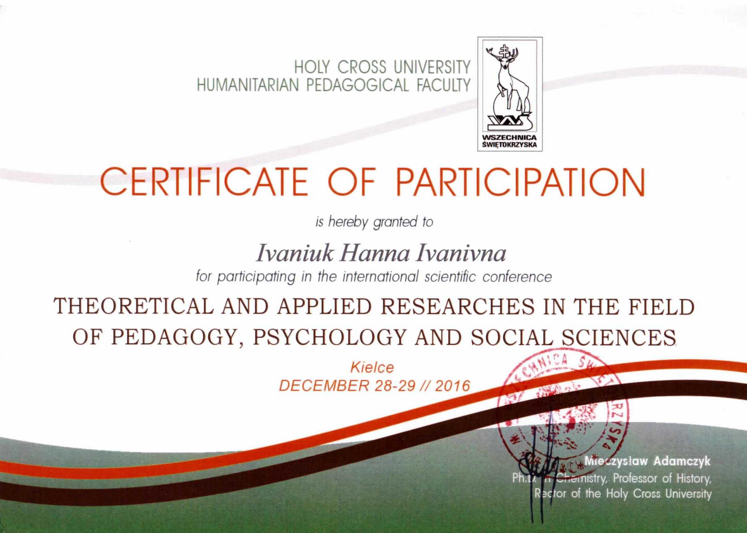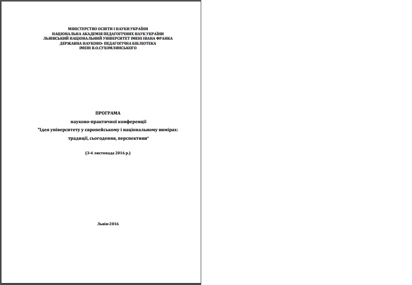 | 1529 | International Scientific-Practical Conference Theoretical and applied researches in the field of pedagogy, psychology and social sciences: Conference Proceedings, December 28-29, 2016. | Соціокультурні чинники розвитку сільскої школи в Україні (1972-1984) | Kielce: Holy Cross University |