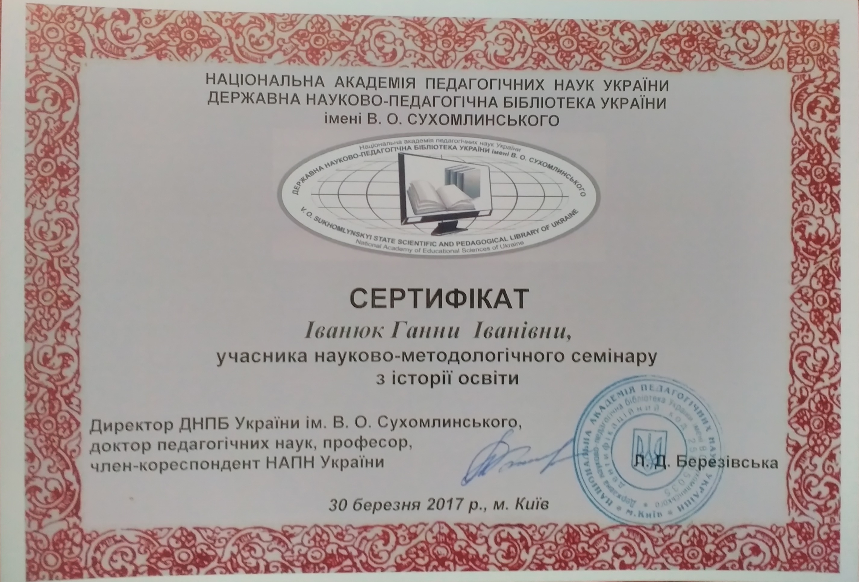 | 1568 | Науково-методологічний семінар з історії освіти | Аналіз сучасного стану досліджень з історії освіти | Державна науково-педагогічна бібліотека України імені В.О. Сухомлинського |