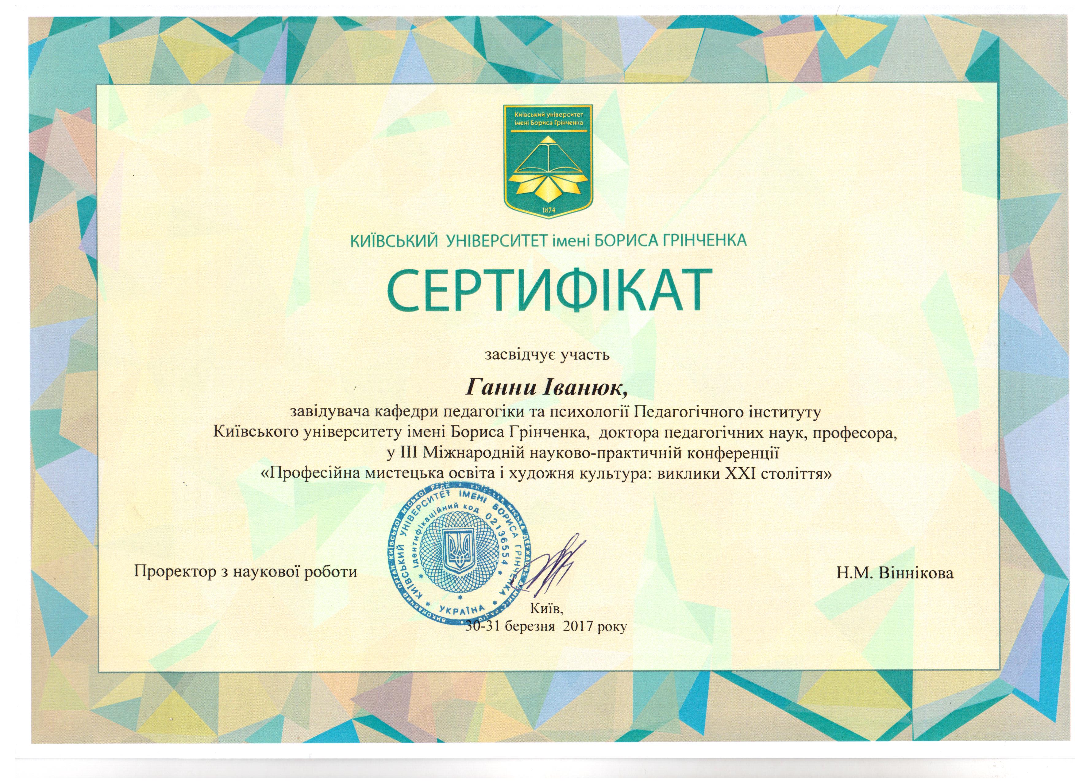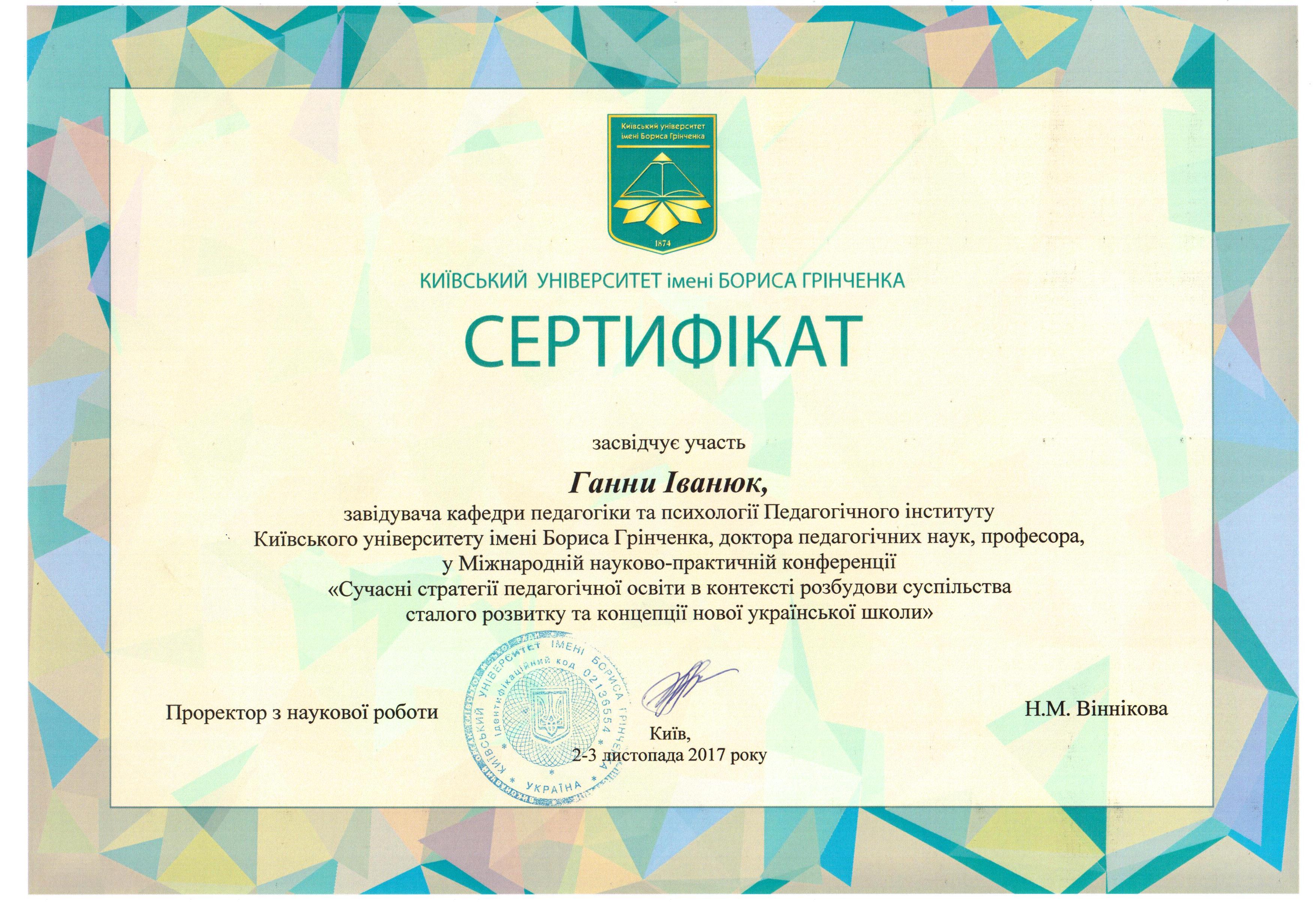 | 1257 | "Професійна підготовка педагогів в умовах євроінтеграції: проблеми та перспективи" | Всеукраїнська науково-практична конференція | Київський університет імені Бориса Грінченка | 12.10.2017 00:00 | 5 |