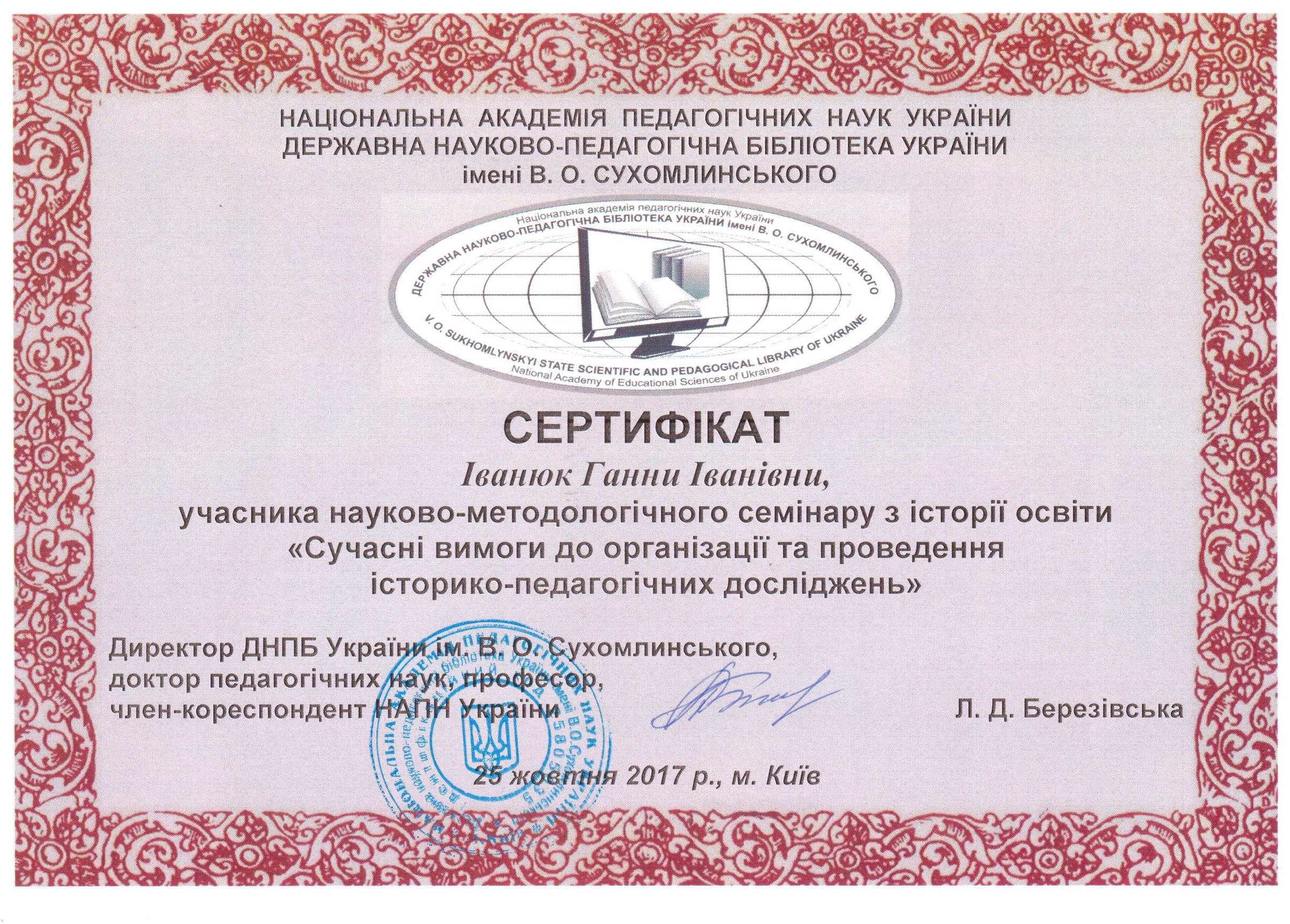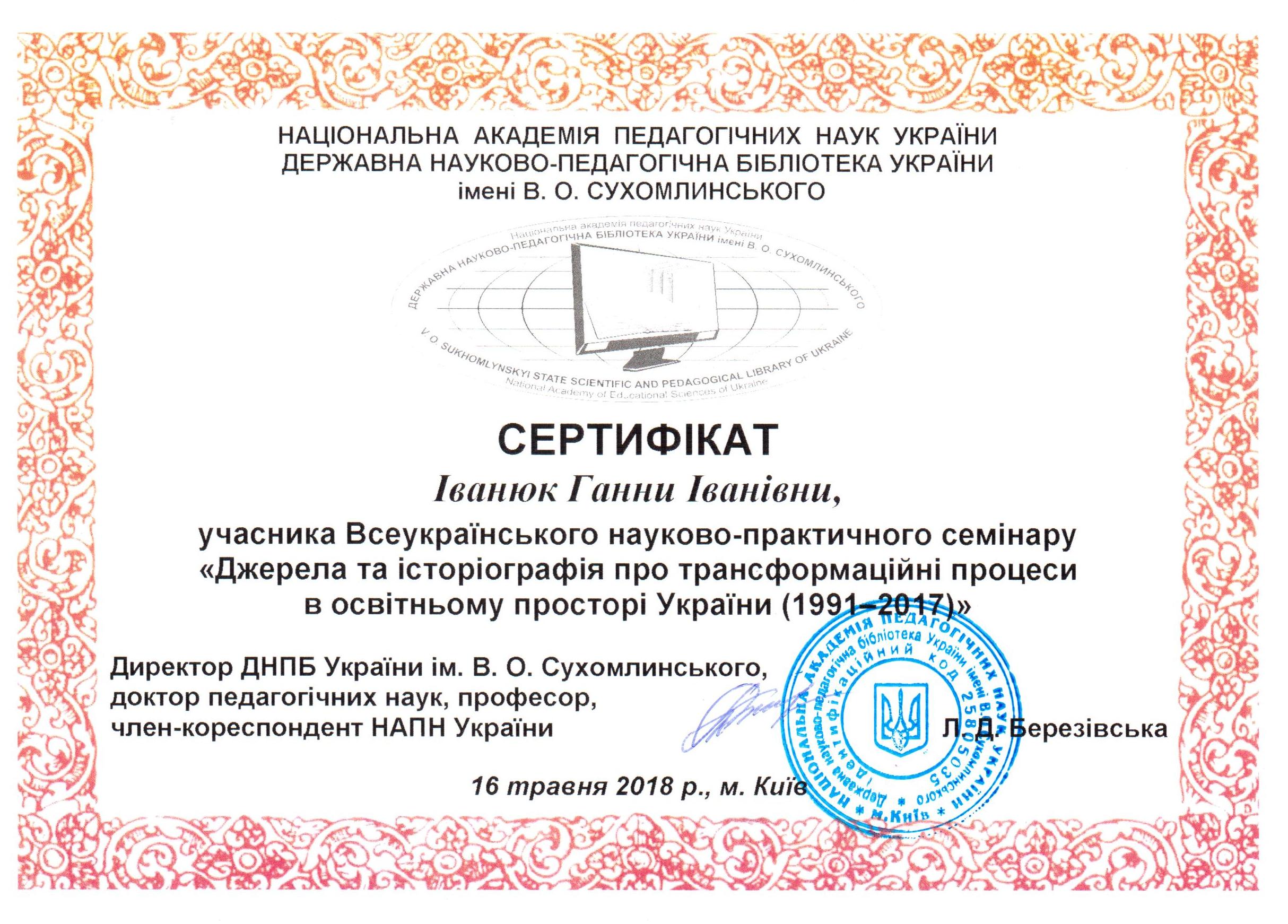| 3139 | Всеукраїнський науково-практичний семінар "Джерела та історіографія про трансформаційні процеси в освітньому просторі України (1991-2017)" | Джерела та історіографія дослідження розбудови системи освіти в Україні (1991-2017) | Державна науково-педагогічна бібліотека України імені В.О. Сухомлинського |