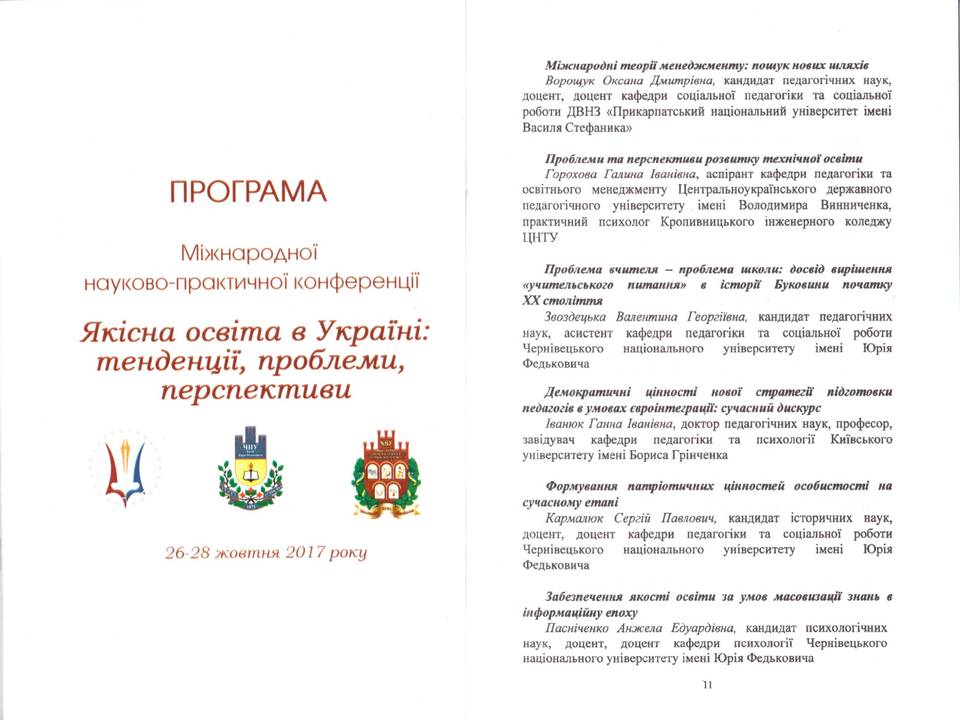 | 1975 | Якісна освіта в Україні: тенденції, проблеми, перспективи | Демократичні цінності нової стратегії підготовки педагогів в умовах євроінтеграції : сучасний дискурс | Чернівецький національний університет імені Юрія Федьковича |