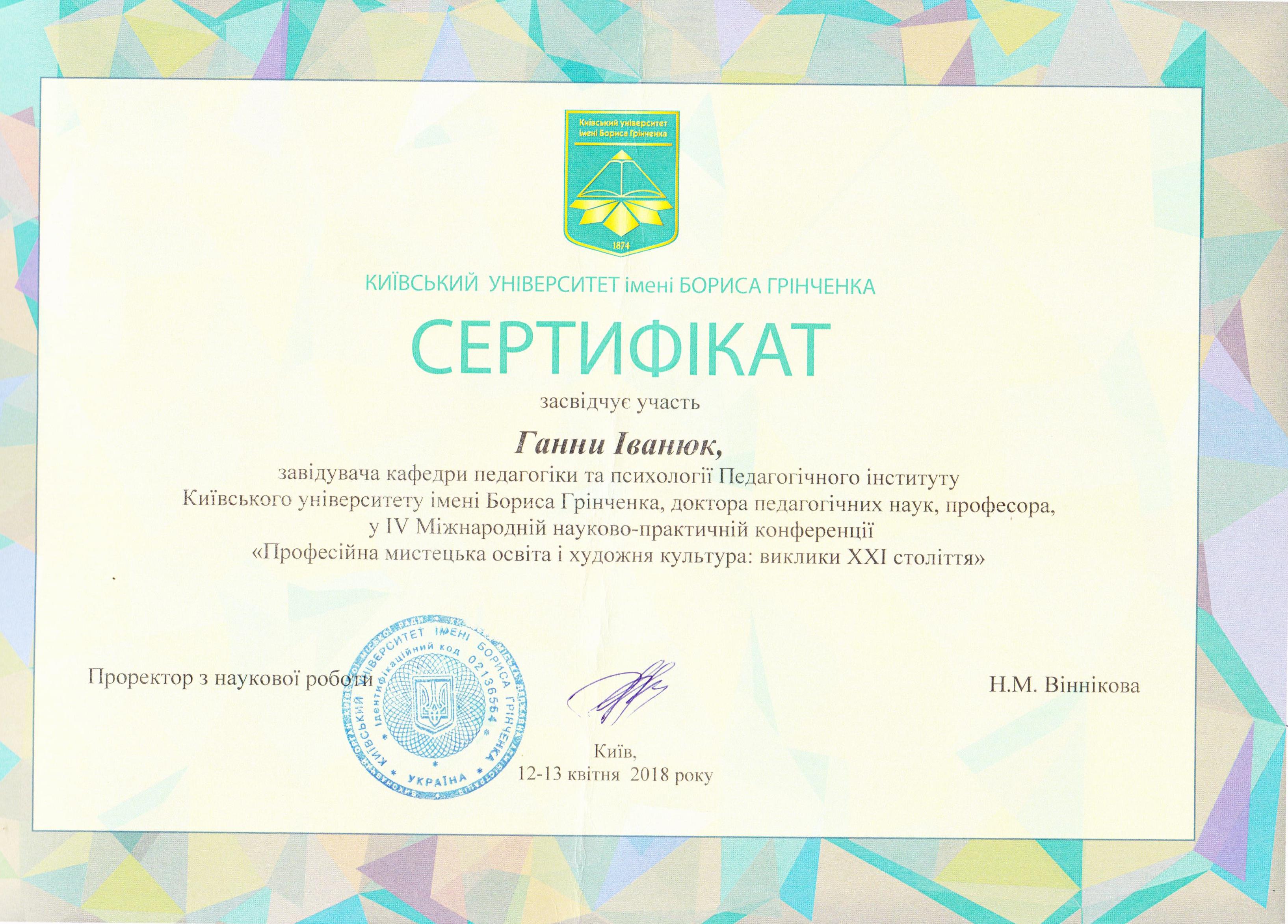 | 4144 | V Міжнародна науково-практична конференція "Професійна мистецька освіта і художня культура : виклики ХХІ століття" | Культурно-історичний концепт особистісно-професійного зростання педагога | Київський університет імені Бориса Грінченка |